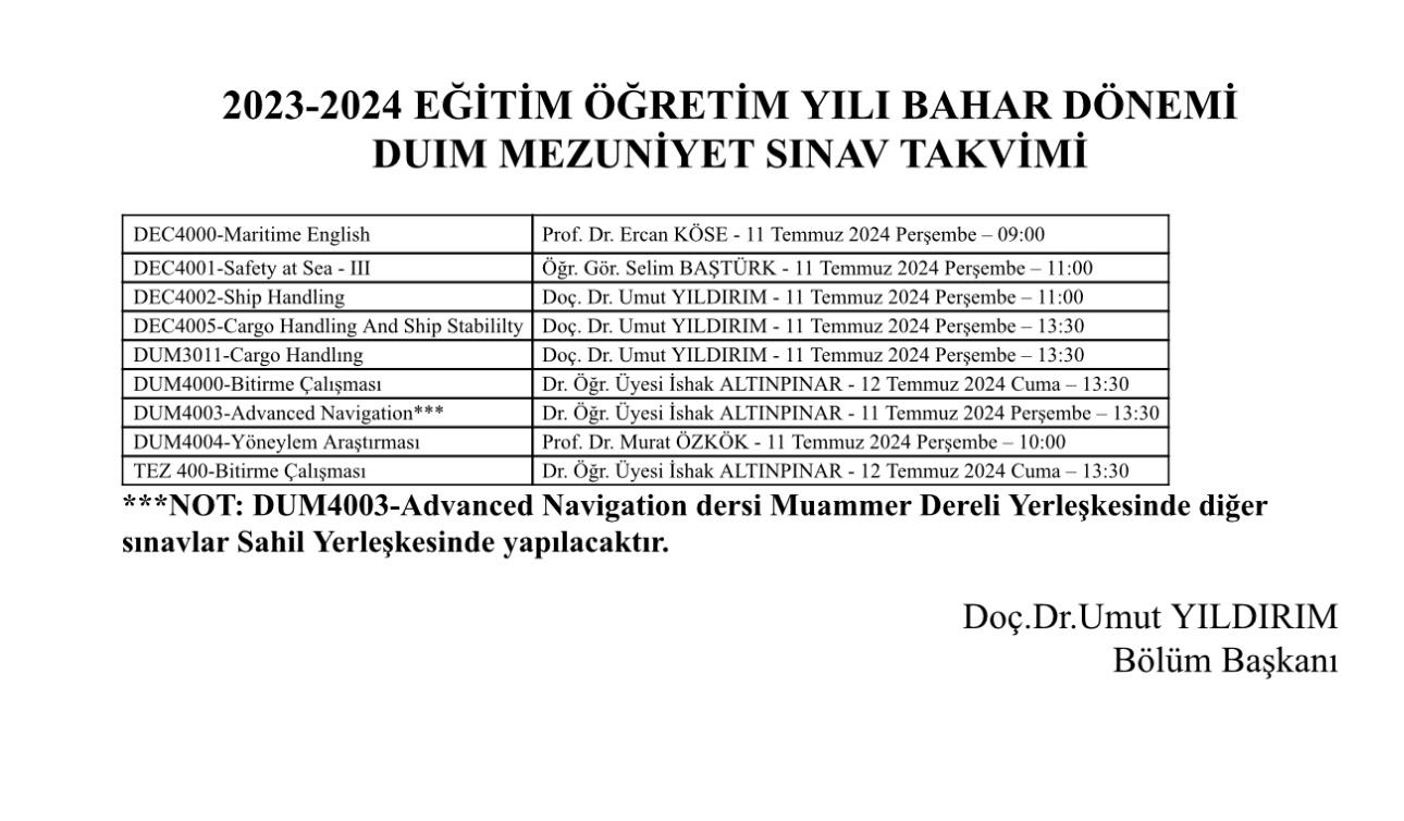 2023-2024 Bahar Dönemi Mezuniyet Sınav Programı Güncellendi