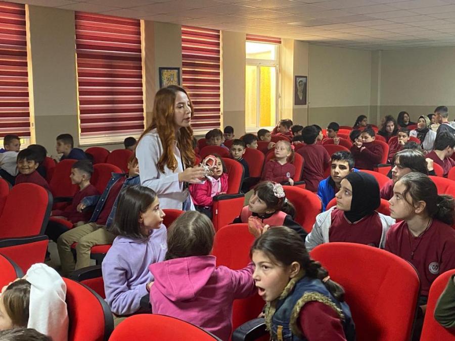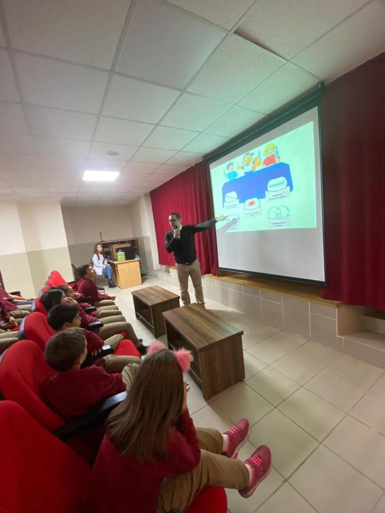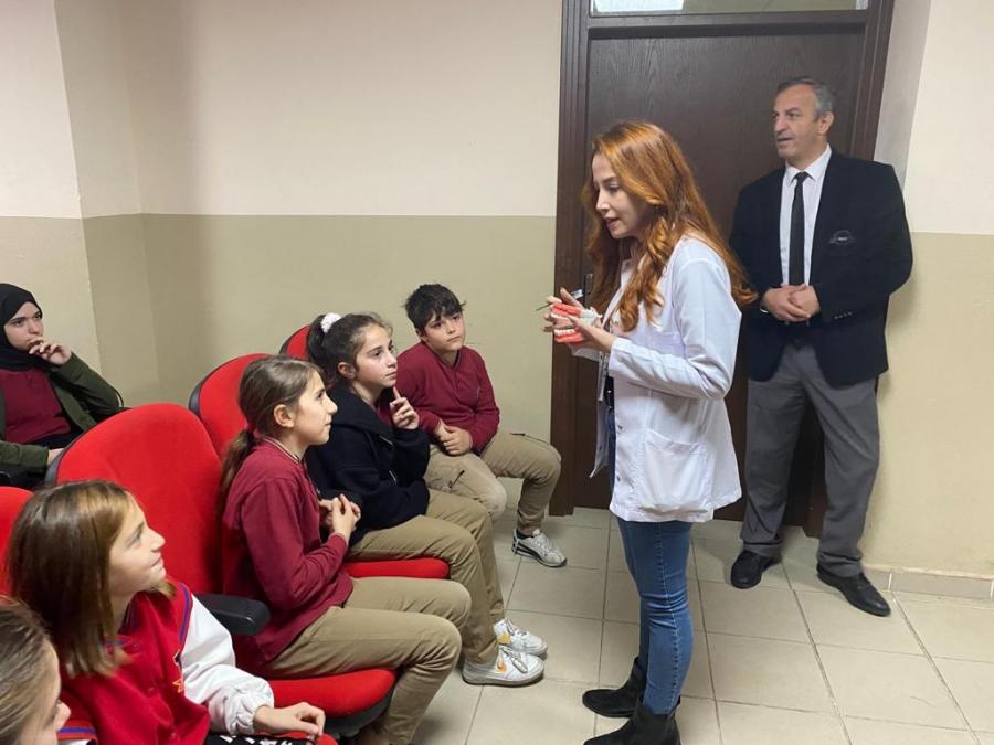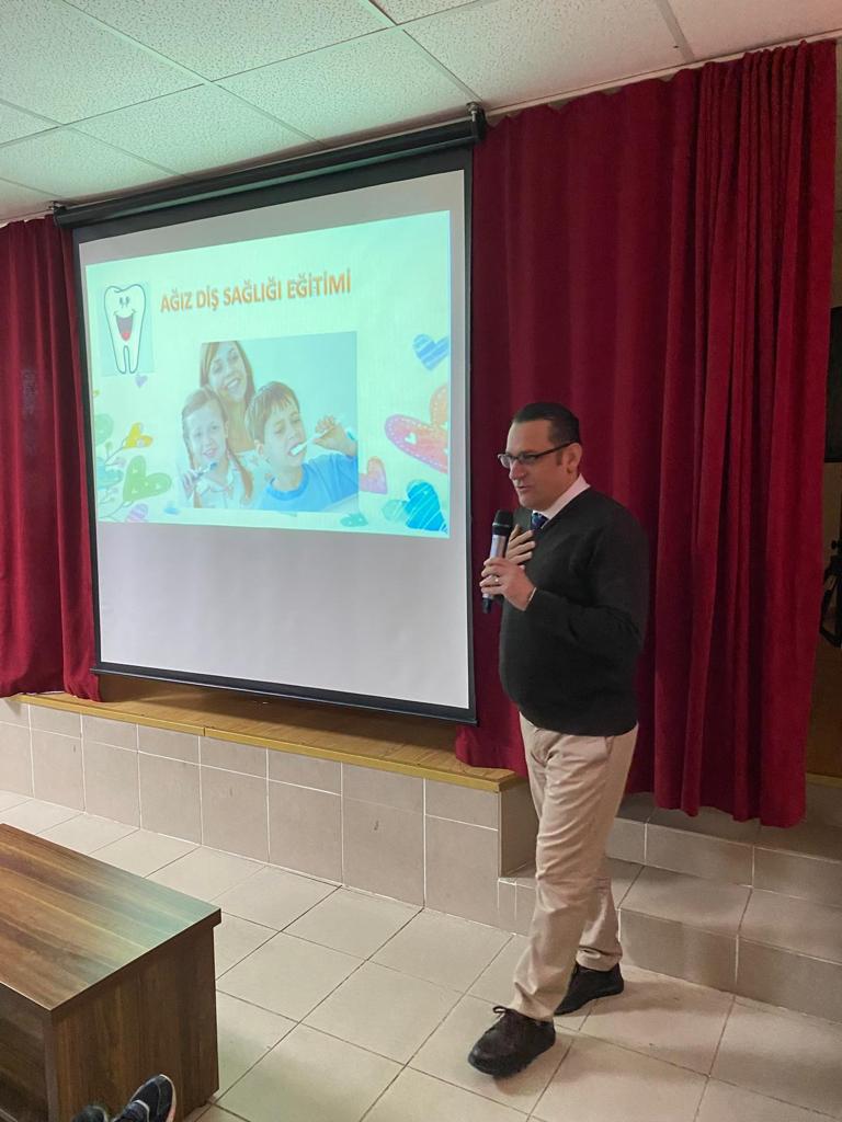 Fakültemiz Klinik Bilimler Bölümü Pedodonti Anabilim Dalı Başkanı Prof. Dr. Tamer TÜZÜNER, Restoratif Diş Tedavisi Anabilim Dalı öğretim üyelerinden Dr. Öğr. Üyesi Kıvanç DÜLGER ve öğretim elemanlarından Arş. Gör. Dt. Kübra TEMİZ ve Arş. Gör. Dt. İrem Nur ÇAKMAK tarafından Çimenli İlkokulu’nda eğitim görmekte olan 150 öğrenciye yönelik ağız ve diş sağlığı eğitimi verilmiş olup eğitim öncesi ve sonrası öğrencilere öntest/sontest uygulanarak eğitimin etkinliği analiz edilmiştir.
