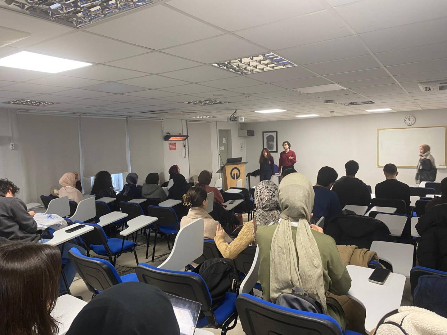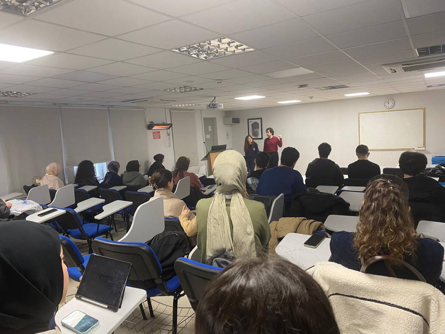 Etkinlik kapsamında, Fakültemiz öğrencilerinden İbrahim Coşgun (Dönem IV) ve Zeynep Tekin (Dönem V), Erasmus+ Programı çerçevesinde yurt dışında edindikleri akademik ve sosyal deneyimleri arkadaşlarıyla paylaştı. Programda, Erasmus sürecine başvuru aşamaları, yurt dışındaki eğitim ortamı, klinik uygulamalar, kültürel uyum ve uluslararası deneyimin mesleki gelişime katkıları ele alındı. Katılımcı öğrenciler, sürece ilişkin merak ettikleri soruları yönelterek interaktif bir paylaşım ortamı oluşturdu. Fakültemiz, öğrencilerimizin uluslararası hareketlilik programlarına katılımını teşvik etmeye ve bu alandaki farkındalığı artırmaya yönelik etkinlikler düzenlemeye devam edecektir.