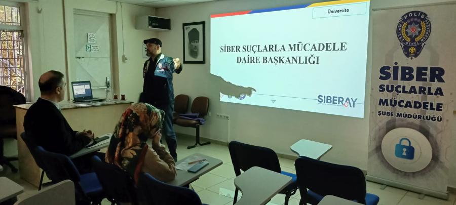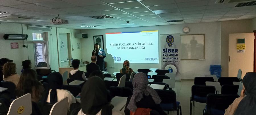 Trabzon Emniyet Müdürlüğü Siber Suçlarla Mücadele Şube Müdürlüğünde görevli Siber Suç Soruşturma ve Araştırma Uzmanı İlhan TOZLUYURT tarafından Fakültemiz öğrencilerine yönelik “Kişisel Verilerin Korunması, Siber Suç Dolandırıcılığı ve Güvenli İnternet Kullanımı” başlıklarında bilgilendirme eğitimi düzenlenmiştir.