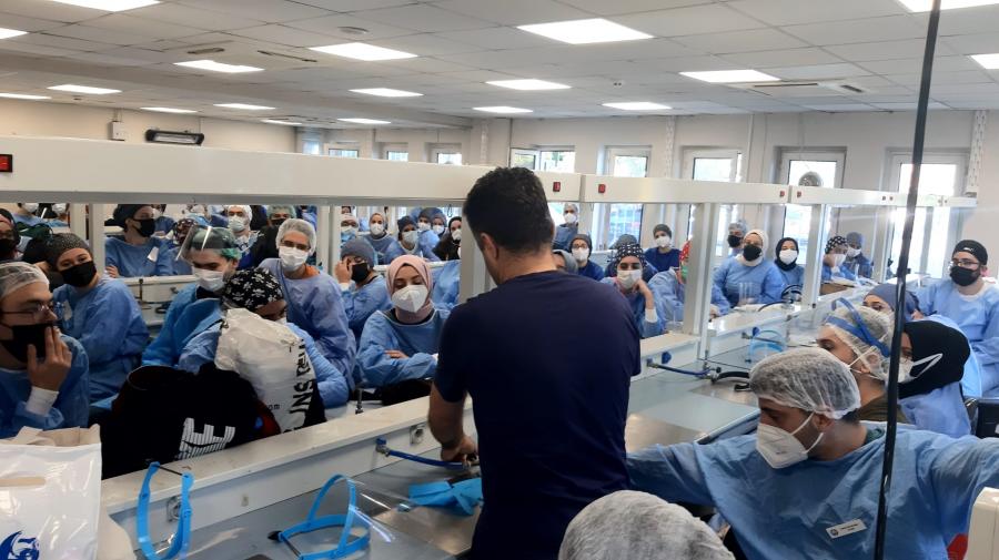 2022-2023 Eğitim-Öğretim Yılı'nda Fakültemiz laboratuvarlarında uygulamalı eğitim görecek olan Dönem I, II ve III. sınıf öğrencilerimize yönelik “Laboratuvar Ortamında İş Güvenliği” başlığı altında laboratuvar güvenlik önlemleri, kişisel koruyucu ekipman kullanımı, yangın tüpü kullanımı ve atık yönetimi konularında bilgilendirme eğitim düzenlenmiştir.