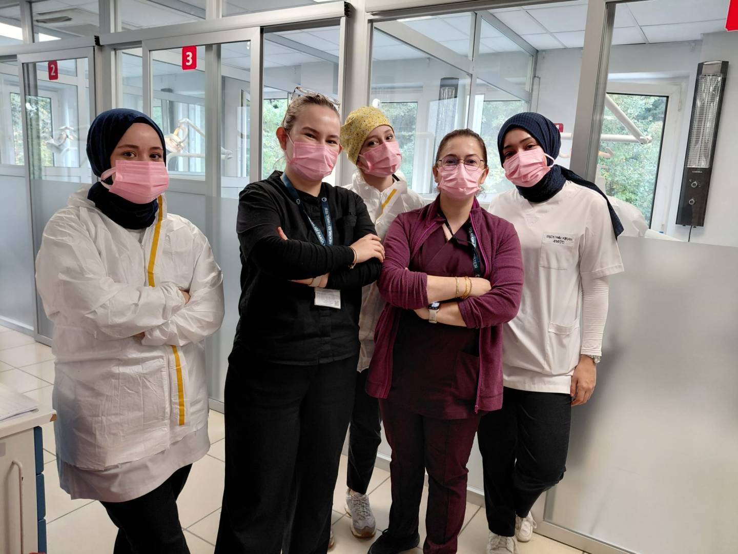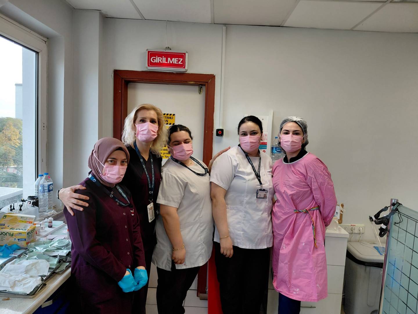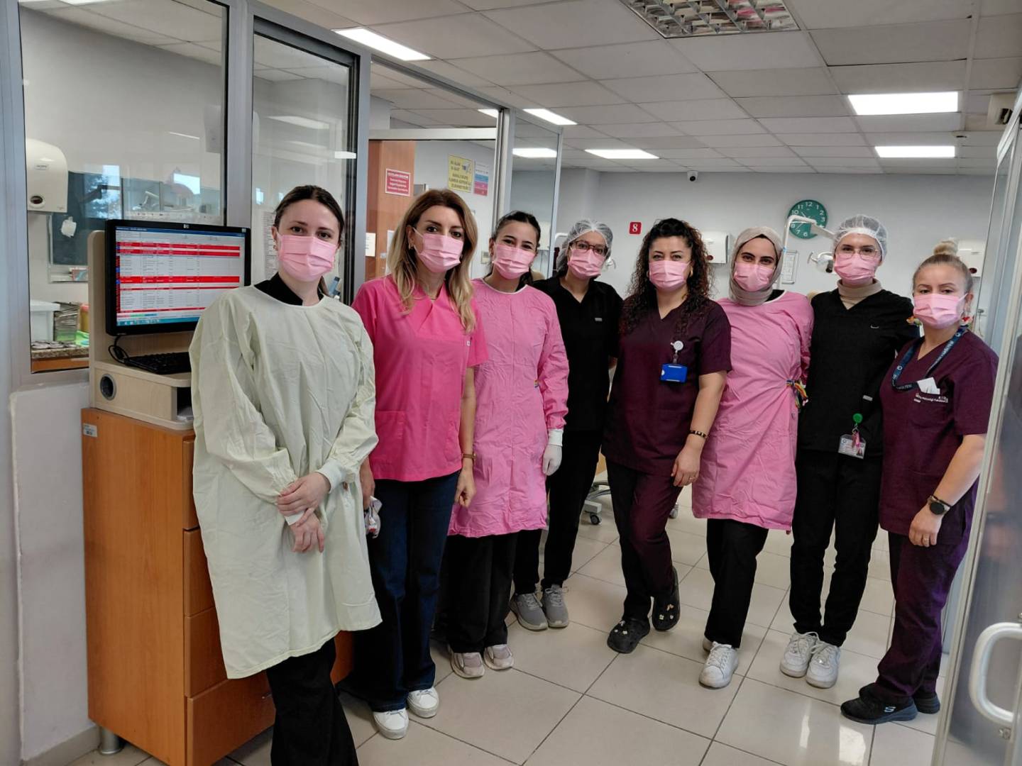1-31 Ekim Meme Kanseri Farkındalık Ayı kapsamında, fakültemiz kliniklerinde görev yapan akademik ve idari personel ile öğrenciler anlamlı bir farkındalık etkinliğine imza attı. Erken tanının önemine dikkat çekmek amacıyla, sağlık çalışanlarımız hafta boyunca pembe maskeler ve pembe baks önlükler giyerek farkındalık mesajı verdi. Bu etkinlik, meme kanseriyle mücadelede toplum bilincini artırmak, erken teşhisin hayati önemini vurgulamak ve kadın sağlığı konusunda farkındalık oluşturmak amacıyla düzenlendi. Fakültemizin akademik ve idari personeli ile öğrencilerimiz, dayanışmayı simgeleyen pembe renkle hastalarımıza moral ve umut desteği sundu.