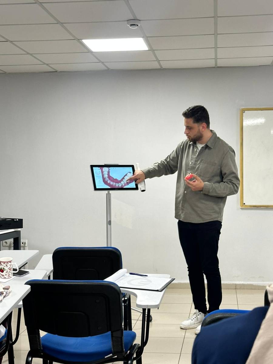 Eğitim süreci boyunca; teknoloji ve yenilik vizyonumuz doğrultusunda, TRIOS 5 ekosisteminin sunduğu dijital hassasiyet katılımcılara uygulamalı olarak gösterilmiştir. Geleneksel yöntemlerin ötesine geçen bu inovatif yaklaşım sayesinde; hatasız dijital ölçü alımı ve modern CAD/CAM protokolleri ile restorasyon süreçlerinde hız ve estetik başarıyı artıran teknik detaylar paylaşılmıştır. Fakültemiz, dijitalleşmenin getirdiği bu teknolojik avantajları eğitim müfredatımızın ve klinik hizmetlerimizin ayrılmaz bir parçası haline getirmeye devam edecektir.