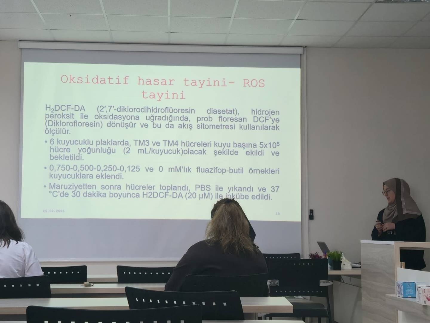 25 Şubat 2026 tarihinde Fakültemiz Farmasötik Toksikoloji Ana Bilim Dalı'ndan Arş. Gör. Yasemin ALTUN ALİ'nin sunumuyla makale saati etkinliği gerçekleştirildi. Sunumun ardından katılımcılarımız, makale hakkında bilimsel değerlendirmeler yaptılar.