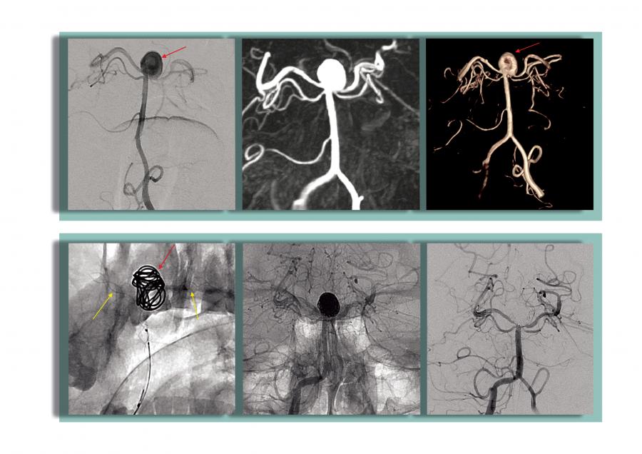 48 yaşındaki diğer hastamızın ilk incelemelerinde beyin kanaması bulgularına rastlandı. Çekilen Beyin Damarları Anjiyografisinde, 8 mm çapında baloncuk (anevrizma) tespit edildi. Patlaması an meselesi olan anevrizmaya kapalı yöntemle kasık atar damarından girildi. Sağ ve sol arka beyin damarını korumak için stent yerleştirildi. Bu aşamadan sonra kritik olan anevrizma koil (tel yumak) ile kapatıldı. Zorlu geçen bu girişimsel işlemler, hastamızın büyük ve riskli bir ameliyata gerek kalmadan şikayetlerini ortadan kaldırıp kısa bir sürede şifa ile taburcu olmasını sağladı.