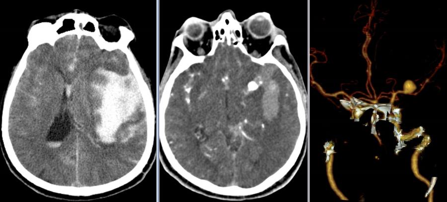 İleri nörolojik görüntüleme özelliği sayesinde beyin içindeki damarlarda oluşan anevrizmaların (baloncukların) erken tanınmasında, yırtılıp kanamadan tedavi edilmesinde önemli katkı sağlamaktadır. Aşağıdaki görselde baloncuk yırtılması (Anevrizma Rüptürü) ve yaygın kanama gözlemlenebilmektedir.