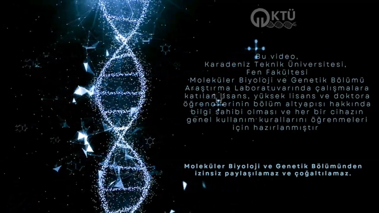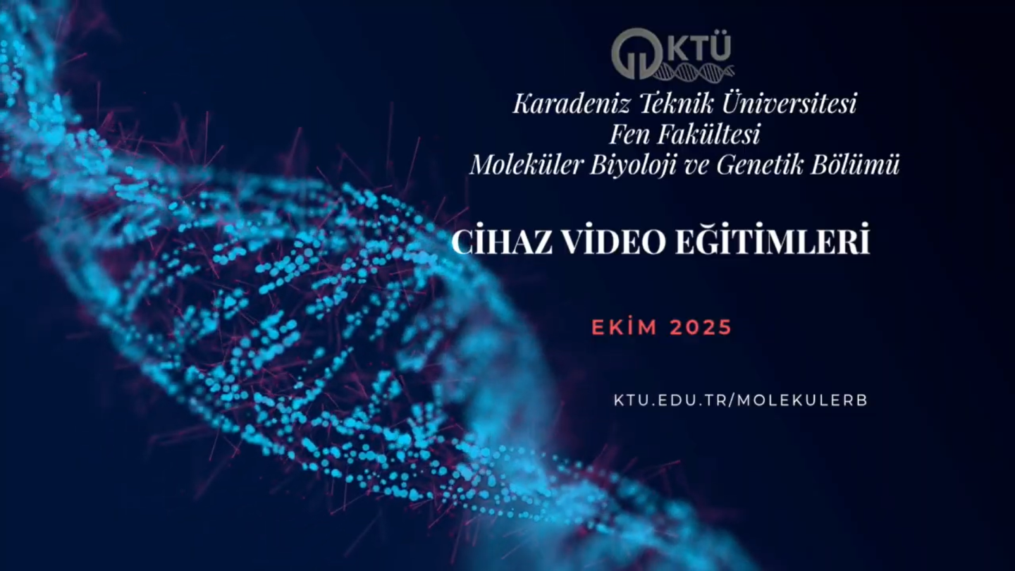 Karadeniz Teknik Üniversitesi Fen Fakültesi Moleküler Biyoloji ve Genetik Bölümü Akademik Bölüm Kurulu’nun 16.10.2025 tarihli ve 74 sayılı toplantısında alınan kararlar doğrultusunda, laboratuvar çalışmalarının güvenli, verimli ve standartlara uygun şekilde yürütülmesini sağlamak amacıyla Araştırma Laboratuvarı Cihaz Eğitim Videoları oluşturulmuştur.