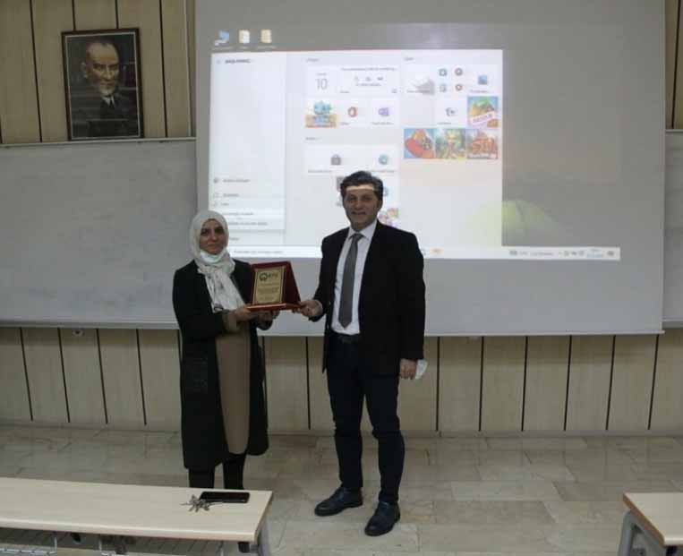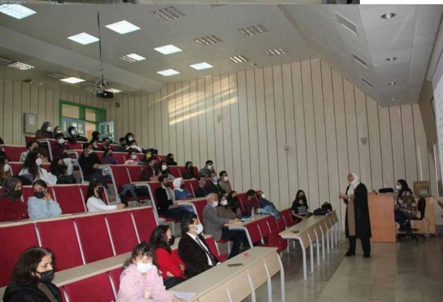 Biyoloji Bölümü öğretim üyesi Prof.Dr.Sabriye ÇANAKÇI 10.12.2021 tarihinde Fizik Bölümü küçük amfide ''Telomer ve Yaşlanma'' konulu seminer verdi.