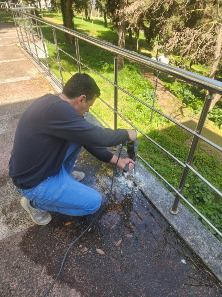 Fizik Bölümü öğretim üyesi binası yan girişinde beton zemin üzerinde su birikmesini gidermek ve yaya geçişlerini kolaylaştırmak için gider açma faaliyeti gerçekleştirilmiştir. Yapılan bu iyileştirme ile bölüm personeli ve yayalar için olası riskler azaltılmıştır.