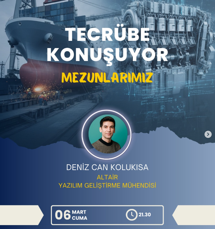 KTÜ Gemi İnşaatı ve Deniz Teknolojileri Kulübü (GEMDTEK) tarafından düzenlenen “Tecrübe Konuşuyor: Mezunlarımız” serisinin değerli konuğu ALTAİR Yazılım Geliştirme Mühendisi Sayın Deniz Can KOLUKISA oldu.