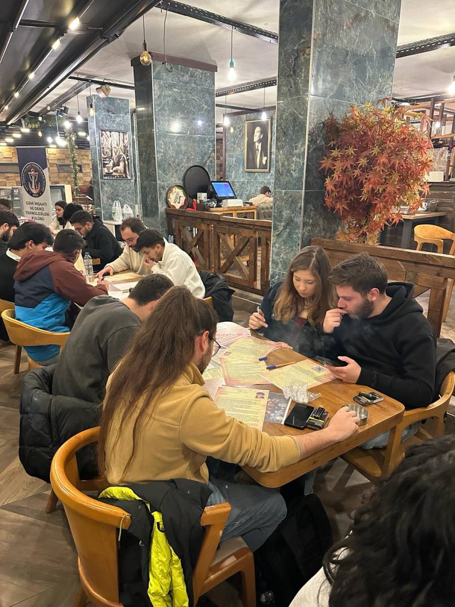 Gemi Etkinlikleri Kulübü (GEK) ile Gemi İnşaatı ve Deniz Teknolojileri Kulübü (GEMDTEK) tarafından fakültemizde “Katil Kim?” temalı bir masa oyunu etkinliği düzenlenmiştir. Öğrencilerimizin katılımıyla gerçekleştirilen etkinlikte, katılımcılar dedektiflik rolünü üstlenerek ipuçlarını değerlendirmiş, şüphelileri sorgulamış ve katilin kim olduğunu bulmaya çalışmıştır.