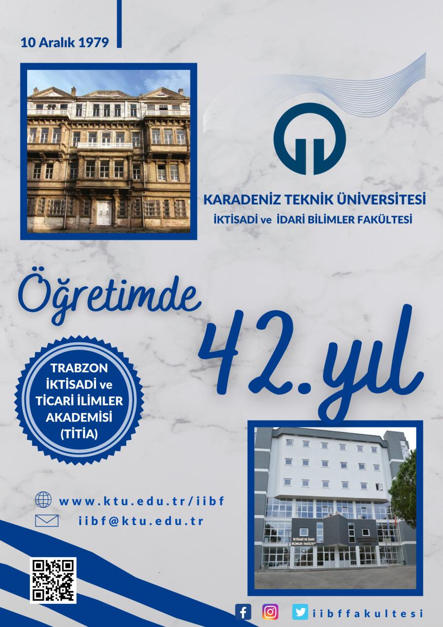Fakültemizin 42. Öğretim yılına ulaşmasının haklı gururunu yaşıyoruz. 10 Aralık 1979 da TİTİA (Trabzon İktisadi ve Ticari İlimler Akademisi) adıyla öğretime başlayan fakültemiz bugün 8 bölüm 140 öğretim elemanı, 10 bin öğrenci ve 25 bine yakın mezuna ulaşmıştır.