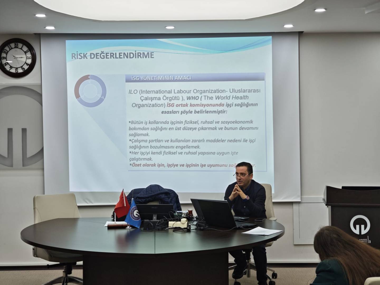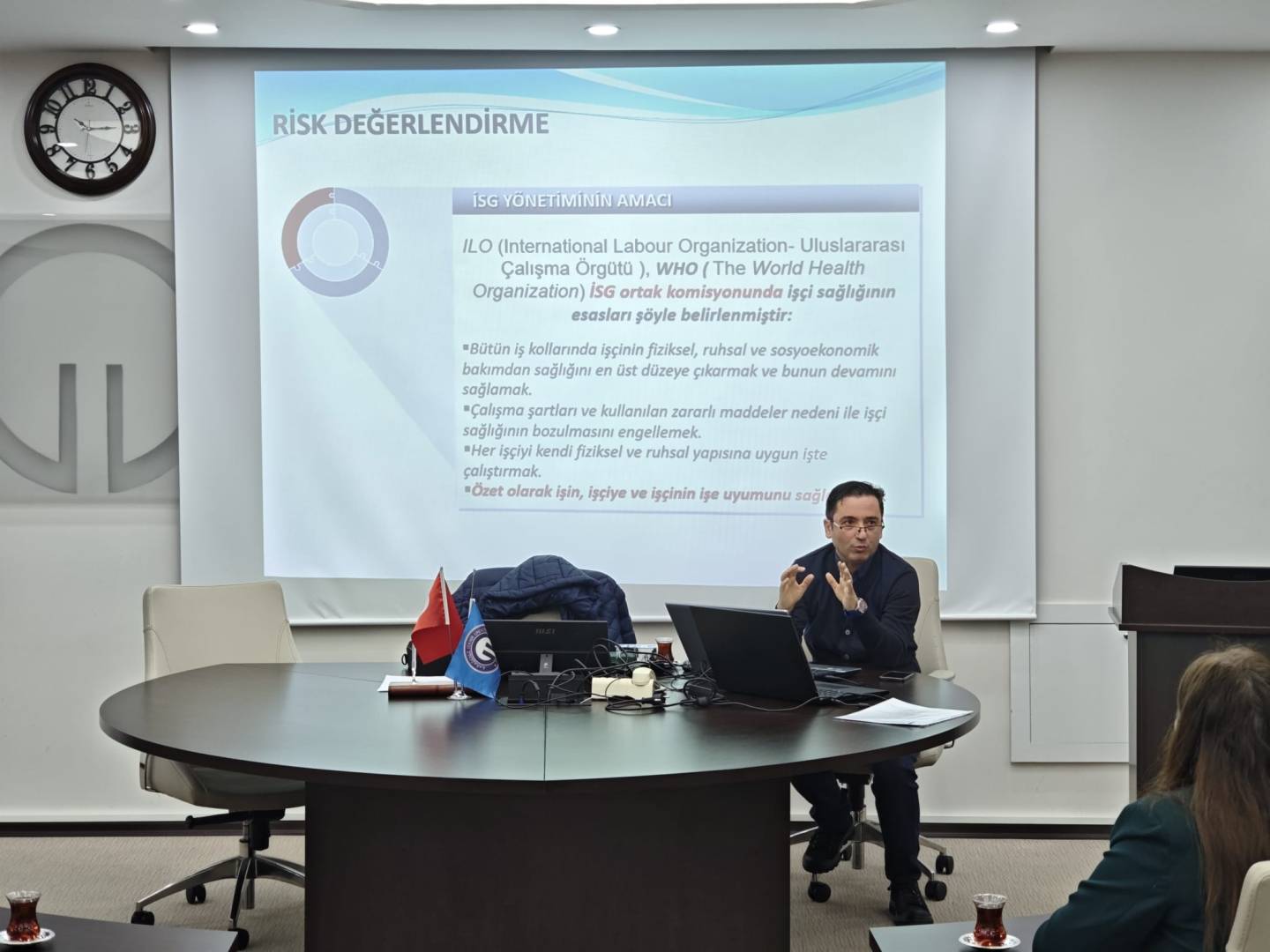 Fakültemizde İş Sağlığı ve Güvenliği kapsamında A sınıfı İş Güvenliği Uzmanı Öğr. Gör. Ufuk DOĞRU tarafından Risk Değerlendirme Ekibine “Risk Yönetimi ve Risk Değerlendirmesi” konulu bilgilendirme ve değerlendirme toplantısı gerçekleştirildi. Toplantıda, 6331 sayılı İş Sağlığı ve Güvenliği Kanunu çerçevesinde yürütülmesi gereken çalışmalar ele alınarak mevcut uygulamalar gözden geçirildi.