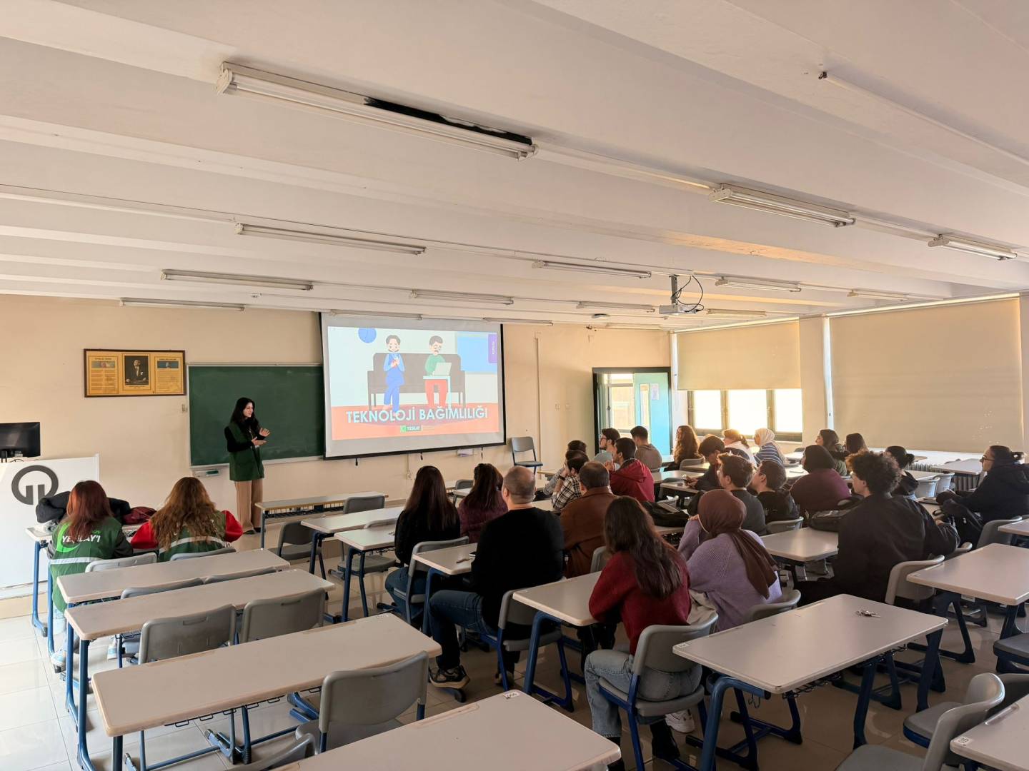 Etkinliğin sunuculuğunu Akran Eğitmeni Damla ÖDEN üstlendi. Program kapsamında teknoloji bağımlılığının bireylerin akademik, sosyal ve psikolojik yaşamları üzerindeki etkileri ele alındı. Katılımcılarla birlikte dijital dünyanın sunduğu fırsatlar ve beraberinde getirdiği riskler değerlendirilirken, sağlıklı teknoloji kullanımı ve dijital dengeyi korumaya yönelik öneriler paylaşıldı.