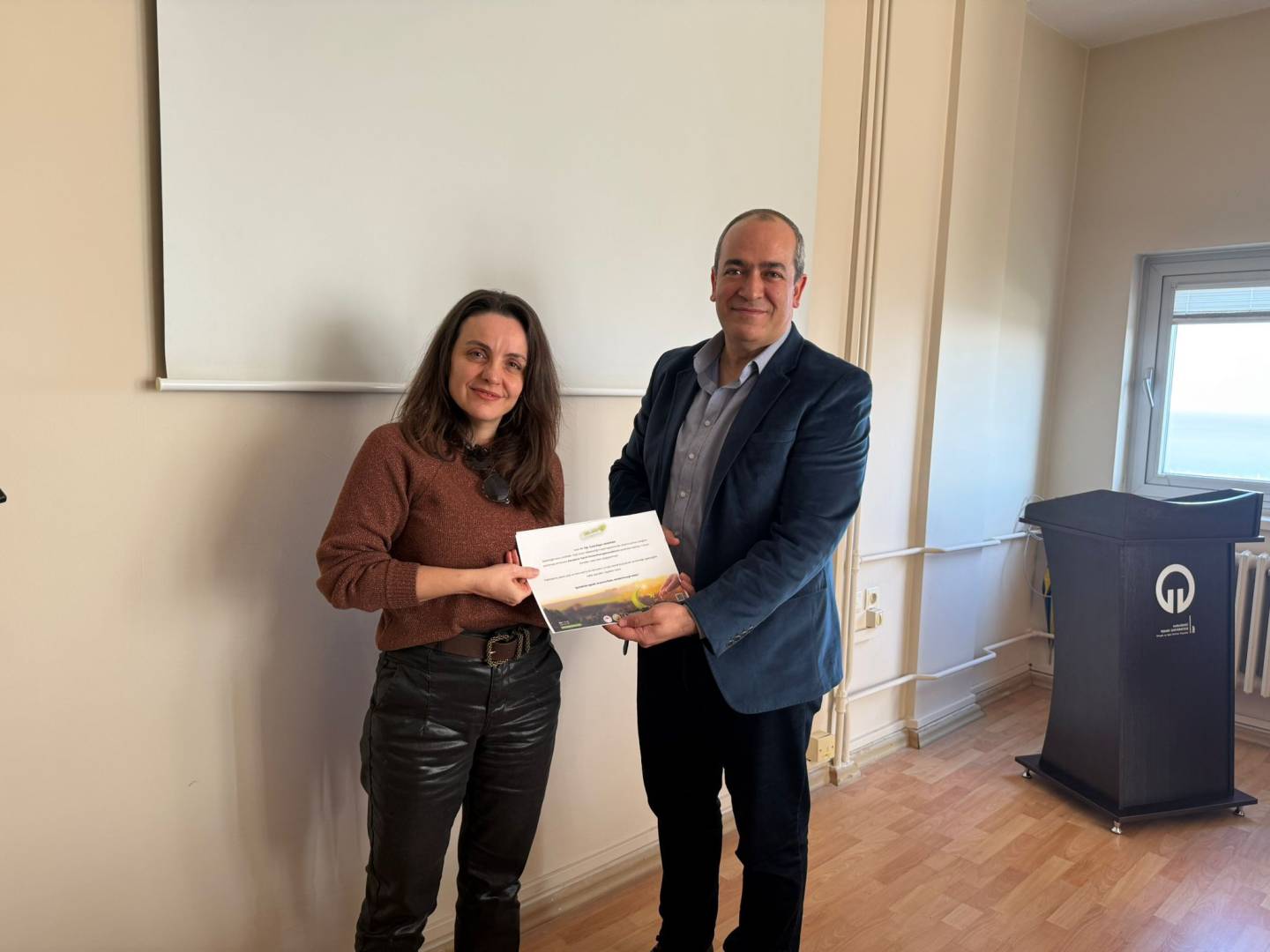 İşletme Bölümü toplantı salonunda gerçekleştirilen tebrik etkinliğinde Bölüm Başkanmız Prof. Dr. Ahmet KURTARAN tarafından fidan bağış sertifikaları personelimize takdim edildi.