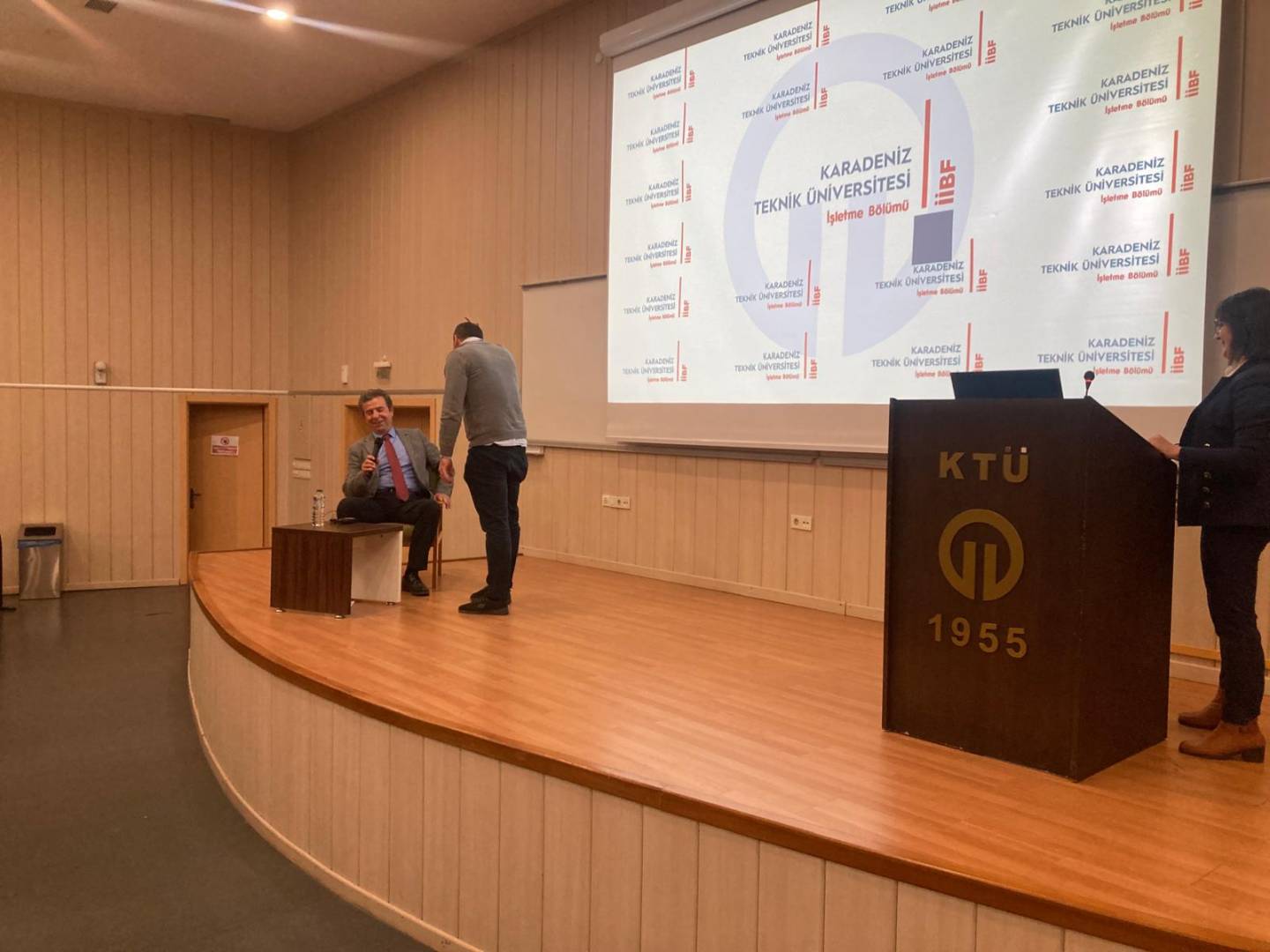 Karadeniz Teknik Üniversitesi İİBF İşletme Bölümü öğretim üyesi Prof. Dr. Mustafa EMİR için Amfi-3'te anlamlı bir veda töreni gerçekleştirilerek emekliliği tebrik edildi.