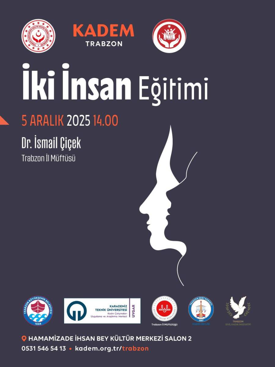 İl Müftüsü Sn. Dr. İsmail Çiçek’in kıymetli sunumuyla; inancımızda ve kültürümüzde kadın ile erkek varlığının ne ifade ettiğini ele alan ‘İki İnsan’ eğitimimize katılımınız bizleri onurlandıracaktır.
