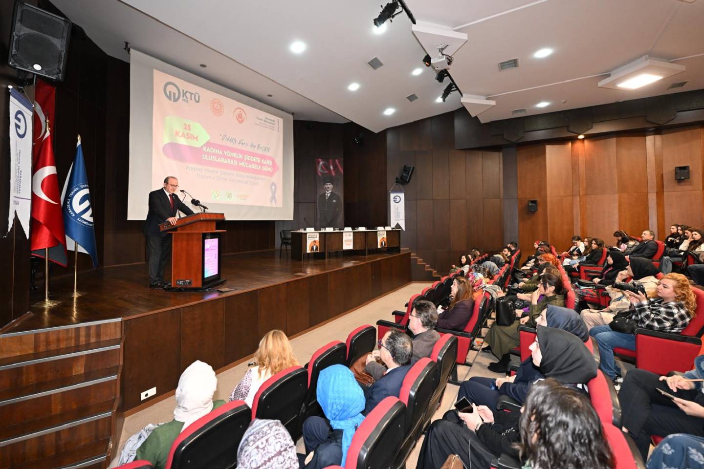 Karadeniz Teknik Üniversitesi Kadın ve Aile Çalışmaları Uygulama ve Araştırma Merkezi (KAÇAUM), Aile ve Sosyal Hizmetler İl Müdürlüğü, Trabzon Üniversitesi, Avrasya Üniversitesi ve Kadın ve Demokrasi Derneği (KADEM) paydaşlığında; 25-26-27 Kasım Kadına Yönelik Şiddete Karşı Uluslararası Mücadele Günü kapsamında üç günlük panel serisi düzenlendi. “Kadına Yönelik Şiddete Karşı Akademiden Topluma Ortak Sorumluluk” temalı paneller, üç farklı üniversitede gerçekleştirilerek geniş bir katılımcı kitlesiyle buluştu.