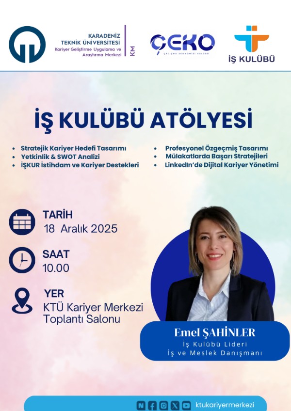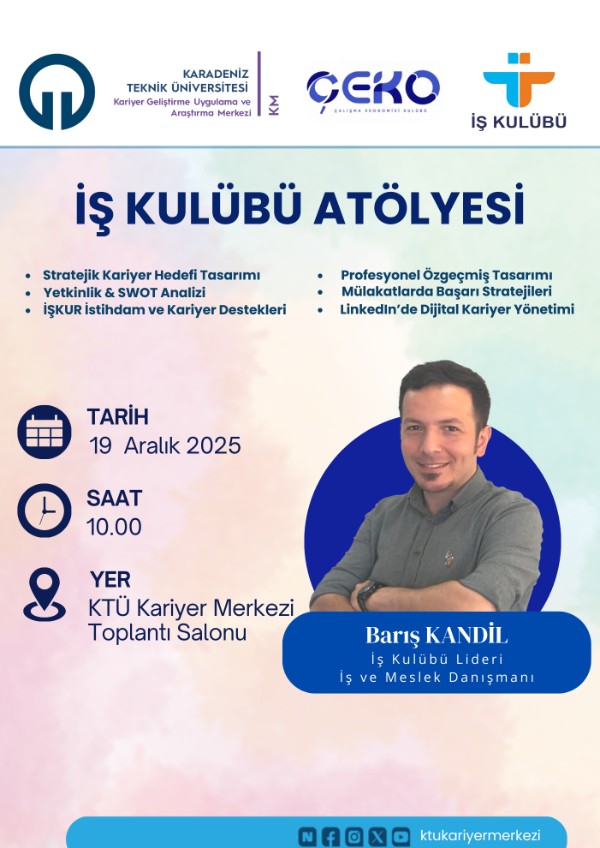 KTÜ Kariyer Merkezi Toplantı Salonunda gerçekleştirilecektir.