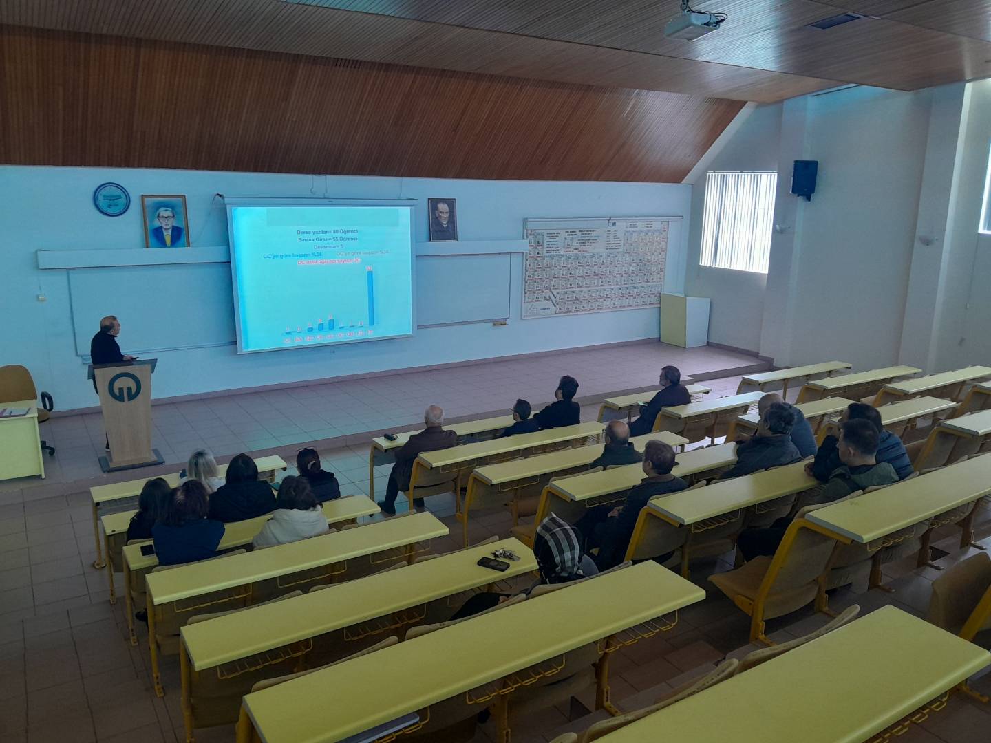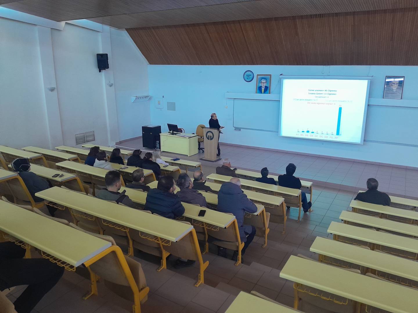 "İç Kontrol Eylem Planı izleme ve değerlendirme toplantısı sayısı" kapsamında Bölümümüzde 17 Mart 2026 tarihinde saat 12.00’de SRA Amfisinde, 2025-2026 Eğitim-Öğretim Yılı Güz Yarıyılına ilişkin Akademik Bölüm Kurulu Toplantısı gerçekleştirildi. Toplantı, Bölüm Başkanımız Prof. Dr. Sedat Keleş'in açılış konuşmasıyla başladı. Açılışta, geride bırakılan yarıyılın genel değerlendirmesine yer verilirken, bölümün akademik hedefleri, eğitim kalitesinin sürdürülebilirliği ve kurumsal gelişim perspektifleri vurgulandı.