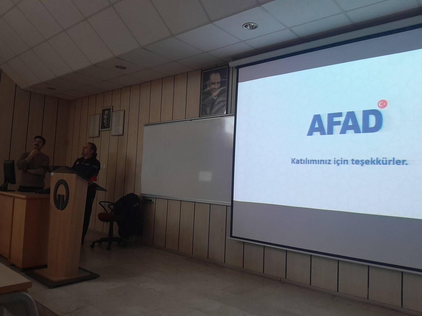 Bölümümüzde AFAD İş Birliğiyle Afet Farkındalık Eğitimi Düzenlendik