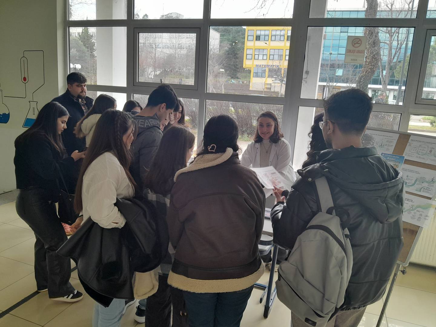 Etkinlik kapsamında bölüm giriş alanına farkındalık afişleri asılırken, öğrencilere bilgilendirici broşürler dağıtıldı. Stantta görev alan araştırma görevlilerimiz, sigaranın insan sağlığı üzerindeki olumsuz etkilerini anlatarak sigarayı bırakmanın fiziksel ve ruhsal faydalarına dikkat çekti. Ayrıca sağlıklı yaşam alışkanlıklarının önemi vurgulanarak gençlerin bilinçli tercihler yapması teşvik edildi.