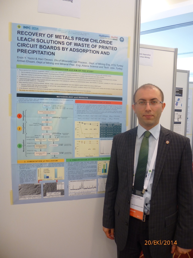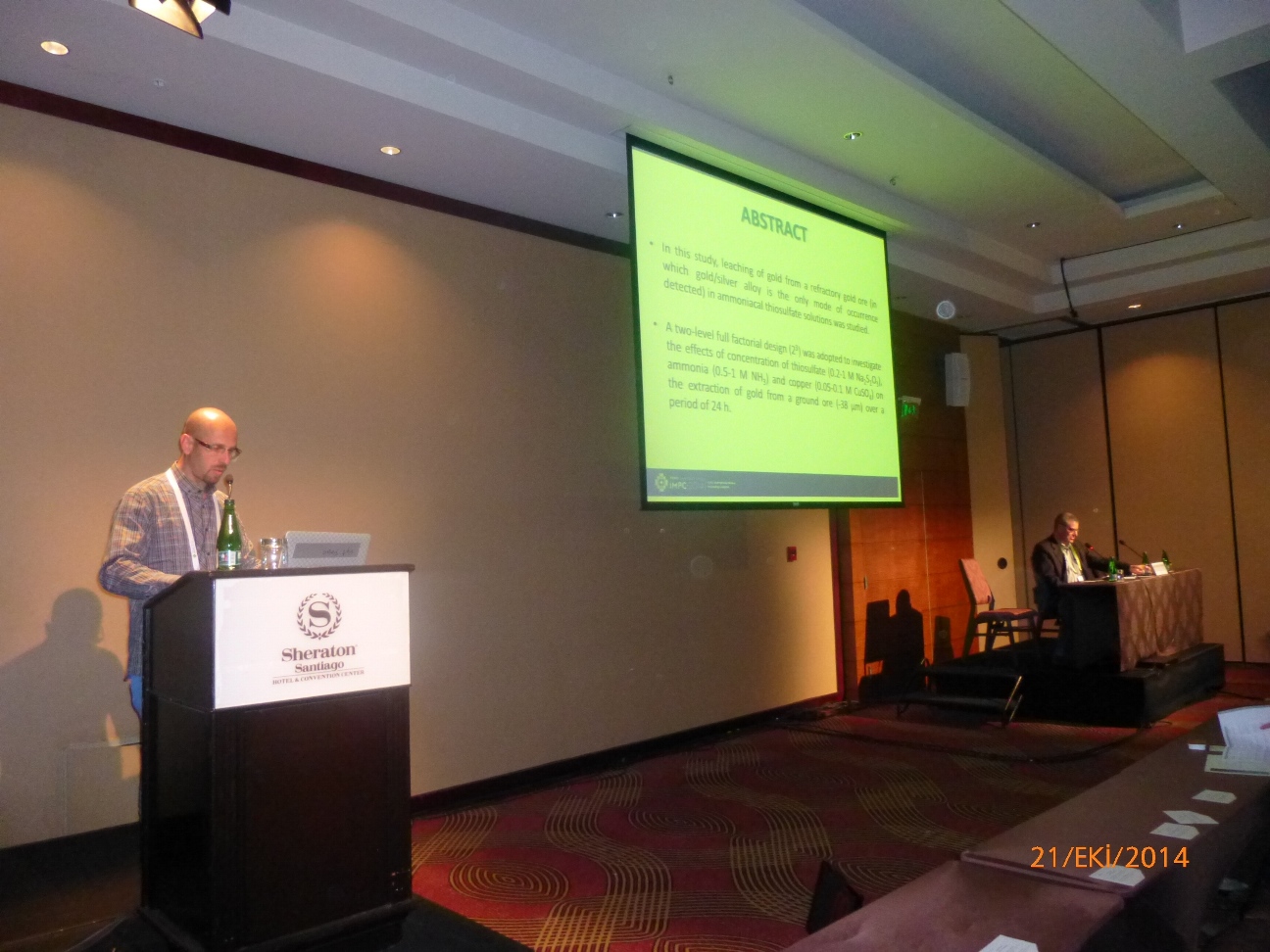 Bölümümüz Cevher-Kömür Hazırlama Anabilim dalı öğretim üyelerinden Yrd.Doç.Dr. Ersin Yazıcı ve Yrd.Doç.Dr. Oktay Celep 20-24 Ekim 2014 tarihleri arasında bu yıl 27’ncisi Şili’nin Santiago şehrinde düzenlenen International Mineral Processing Congress (IMPC) isimli kongreye katıldılar. Kongrede her biri 1 poster ve 1 sözlü sunum olmak üzere toplam 2 poster ve 2 sözlü sunum gerçekleştiren öğretim üyelerimiz bir bakır-molibden flotasyon tesisine de teknik ziyarette bulundular.
