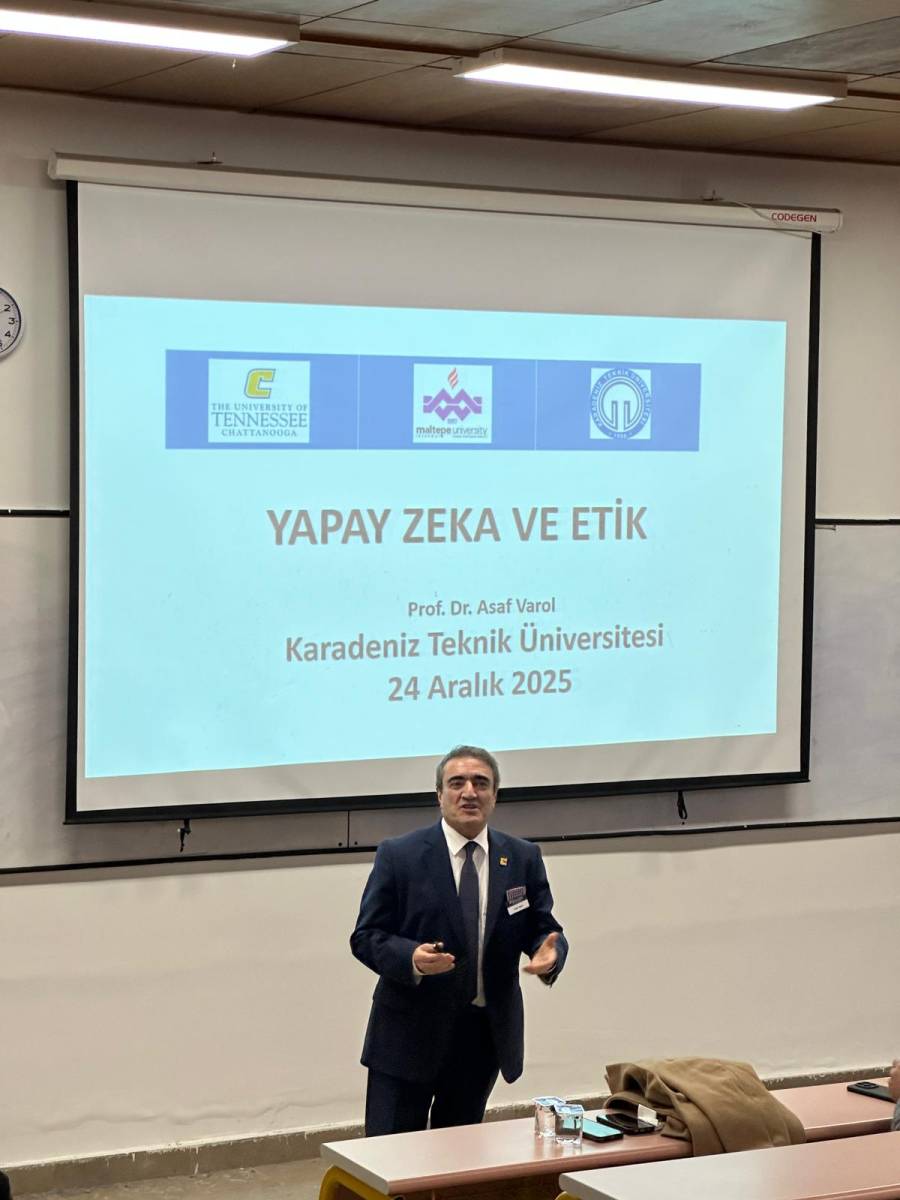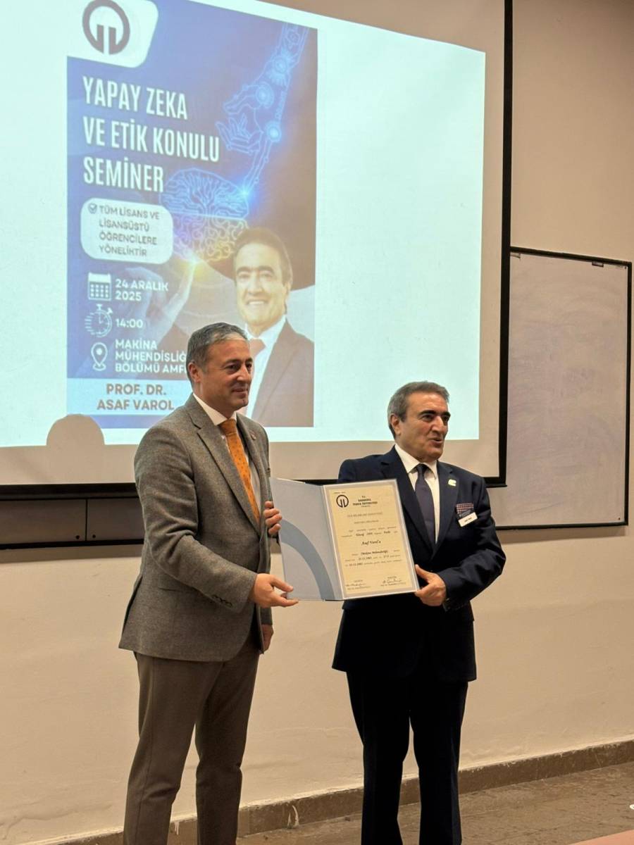 Mühendislik Fakültesi tarafından düzenlenen “Yapay Zekâ ve Etik” konulu seminer, 24 Aralık 2025 tarihinde Makina Mühendisliği Bölümü Amfi-2’de gerçekleştirildi. Etkinlik, lisans ve lisansüstü öğrencilerimizin yanı sıra akademik çalışmalara ilgi duyan katılımcılara yönelik olarak düzenlendi.