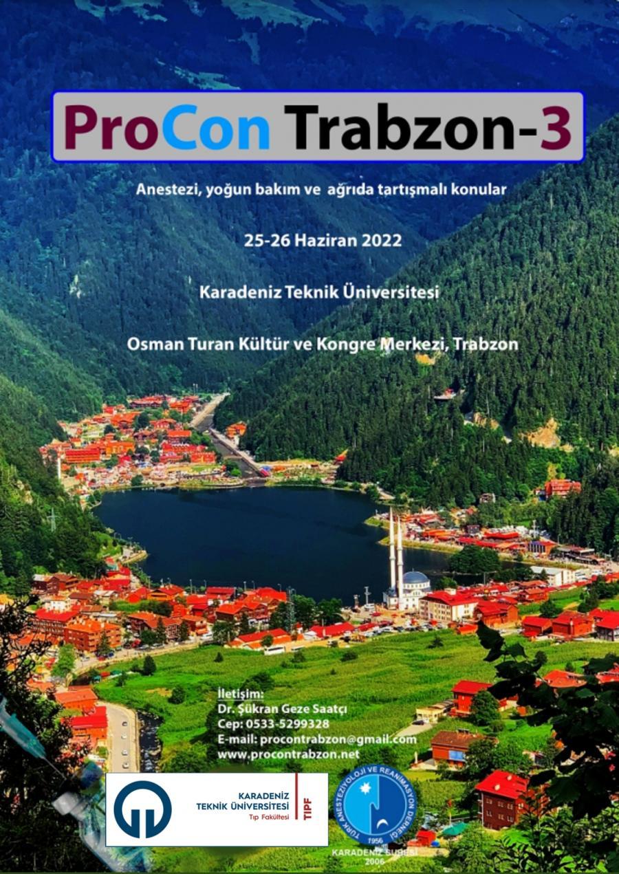 25-26 Haziran 2022 tarihlerinde KTÜ Osman Turan Kültür ve Kongre Merkezi'nde "Anestezi, Yoğun Bakım ve Ağrıda Tartışmalı Konular" adlı ulusal toplantı yapılacaktır. |