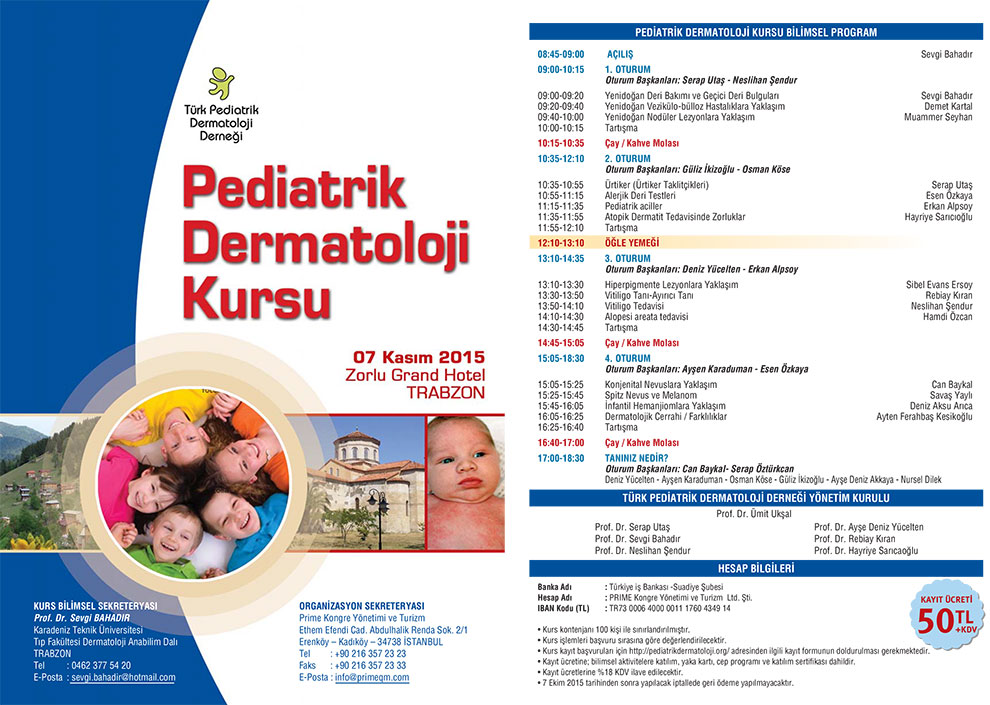 Türk Pediatrik Dermatoloji Derneği'nin 2.Pediatrik Dermatoloji Kursu, Karadeniz Teknik Üniversitesi Tıp Fakültesi Deri ve Zührevi Hastalıklar AD ev sahipliğinde 7 Kasım 2015 tarihinde Trabzon'da gerçekleştirildi.