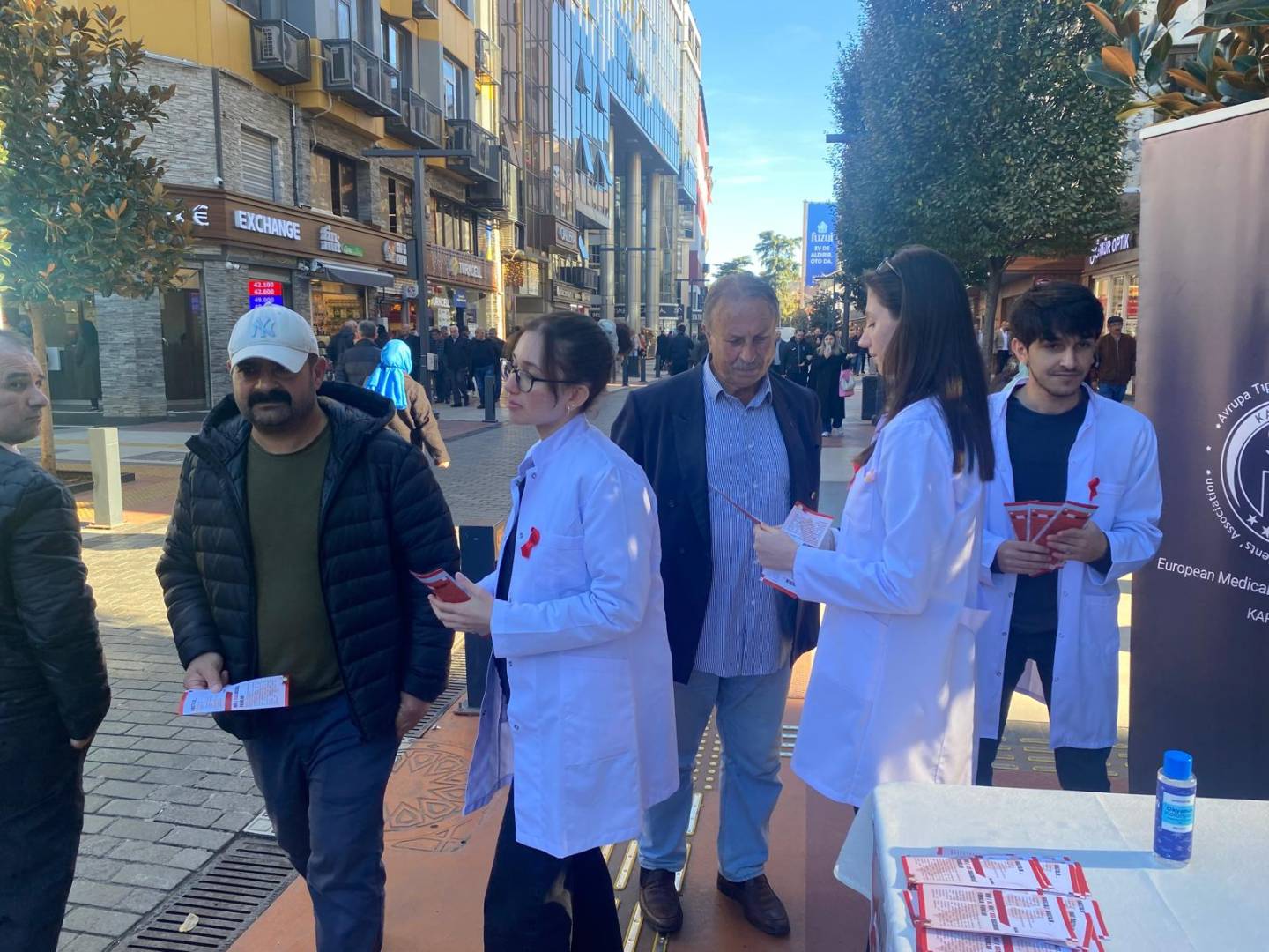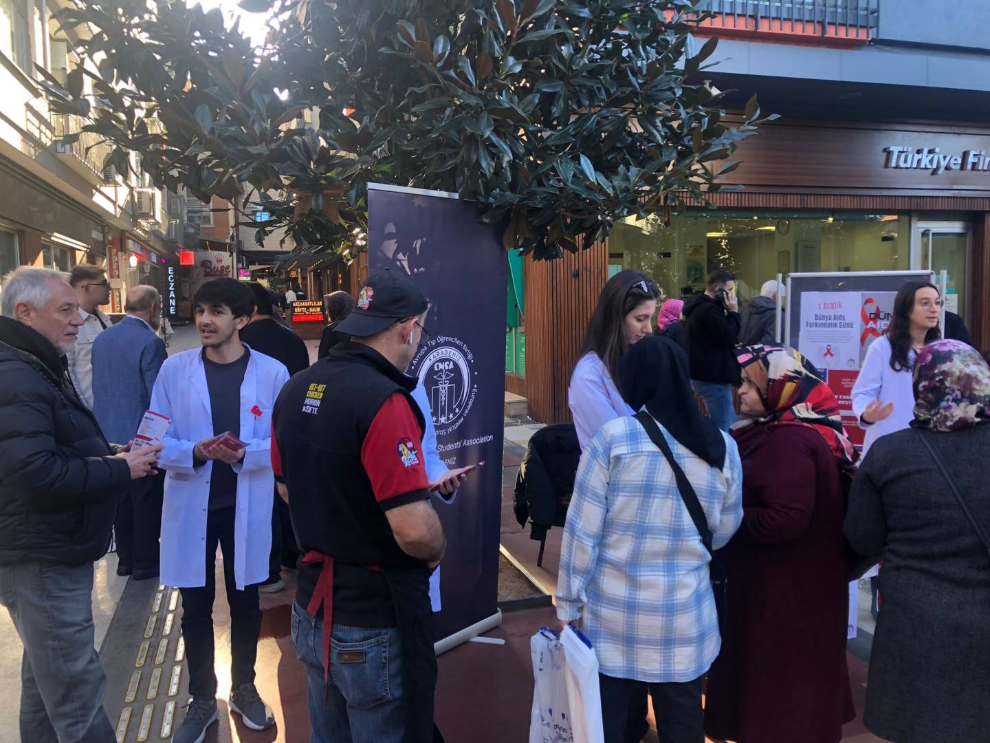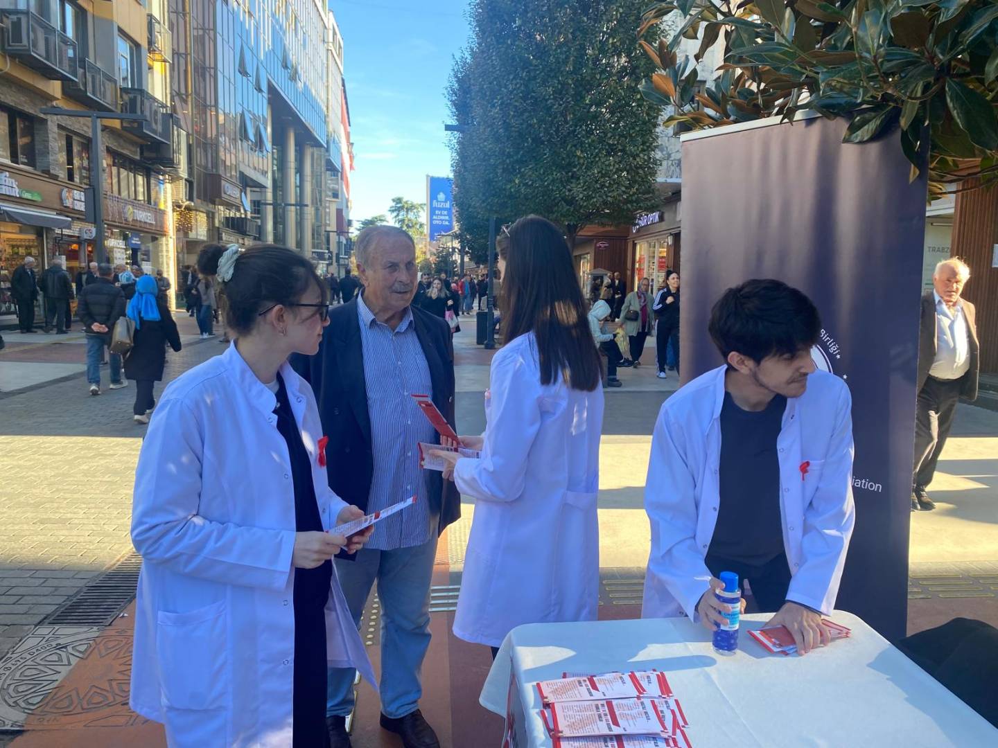 Fakültemiz öğrencileri, AIDS’e karşı toplumda farkındalığı artırmak amacıyla sahada bilgilendirme etkinliği düzenledi. Geleceğin doktorları, HIV/AIDS konusunda doğru ve güncel bilgiye erişimi desteklemek için vatandaşlarla birebir iletişim kurdu.