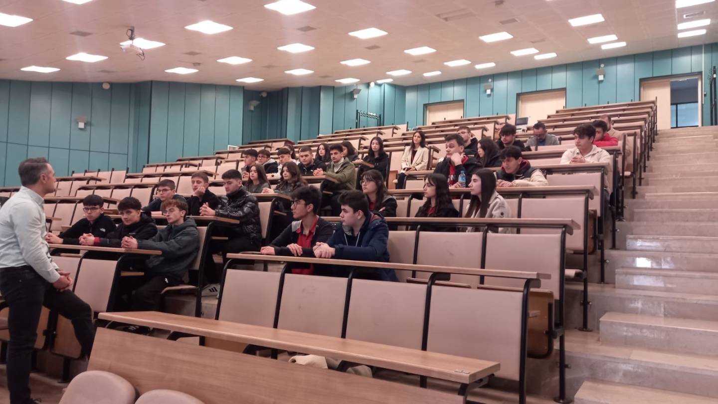 Ziyaret kapsamında, Dr. Öğr. Üyesi Ali Faruk ÖZYAŞAR tarafından Fakültemizin tanıtımı gerçekleştirildi. Öğrencilere eğitim-öğretim faaliyetlerimiz ve fakültemizin sunduğu olanaklar hakkında bilgi verildi. Ziyaret süresince öğrenciler, üniversite yaşamı ve akademik süreçler hakkında merak ettikleri soruları yöneltme fırsatı buldular. Etkinlik, samimi ve verimli bir atmosferde tamamlandı.