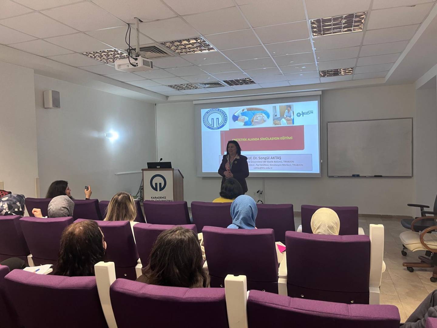 İki gün süren eğitim programı, sağlık profesyonellerinin obstetrik alanda simülasyon temelli eğitim planlama, uygulama ve değerlendirme yetkinliklerini geliştirmeyi amaçlamıştır. Program kapsamında; tıbbi simülasyonun temel kavramları, simülasyon türleri ve teknik donanım, obstetrik alanda simülasyon eğitiminin bilişsel ve psikomotor çıktıları, senaryo yazımının temel bileşenleri, prebriefing süreci, debriefing modelleri ile simülasyonda ölçme ve değerlendirme yöntemleri ayrıntılı biçimde ele alınmıştır.