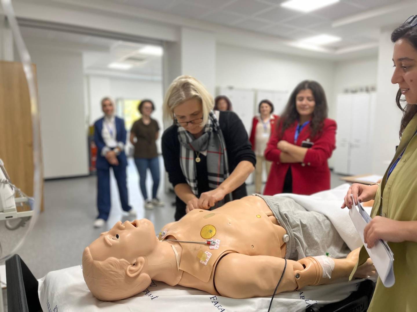 İki gün süren eğitim boyunca katılımcılar; teorik oturumların yanı sıra, manken tabanlı simülasyon uygulamaları ile aktif öğrenme süreçlerini deneyimleme fırsatı buldu. Gerçekçi klinik senaryolar eşliğinde yürütülen uygulamalar, sağlık eğitiminin güvenli, ölçülebilir ve standartlaştırılabilir bir biçimde yürütülmesine yönelik farkındalık oluşturdu.