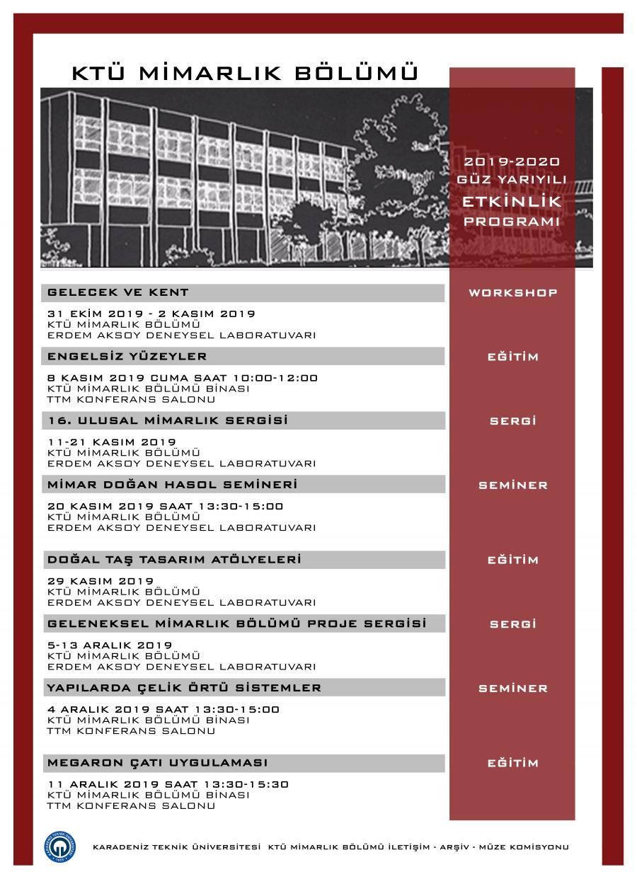 2019-2020 Güz Yarıyılı Etkinlik Takvimi