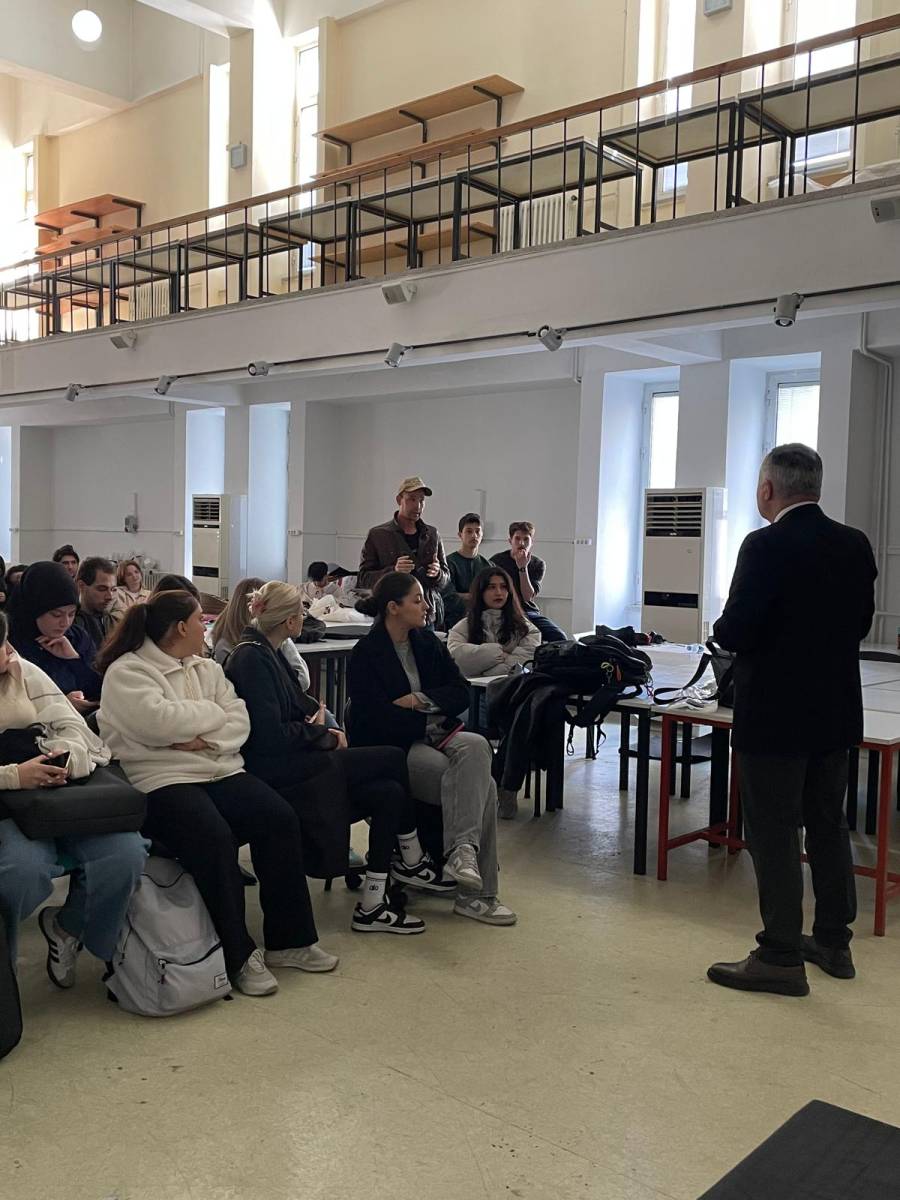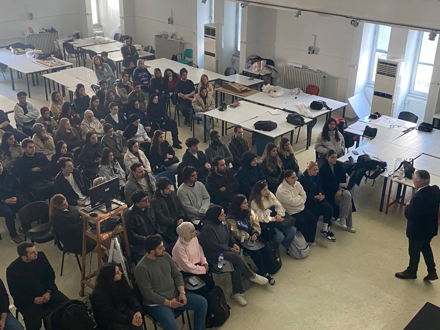 Mimarlık Fakültesi’nde öğrencilerimizle doğrudan iletişim kurmak, görüş ve önerilerini dinlemek amacıyla düzenlenen Dekan–Öğrenci Buluşması, 4 Aralık 2025 Perşembe günü saat 11.30’da Erdem Aksoy Deneysel Tasarım Laboratuvarı’nda gerçekleştirildi.