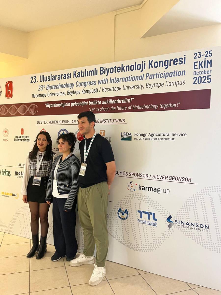 23–25 Ekim 2025 tarihleri arasında Hacettepe Üniversitesi ev sahipliğinde, Biyoteknoloji Derneği tarafından düzenlenen Uluslararası Katılımlı 23. Biyoteknoloji Kongresi’ne, bölümümüzden lisansüstü öğrenciler ile Araştırma Görevlisi Aleyna Nalçaoğlu Şenocak katılım sağlamıştır.