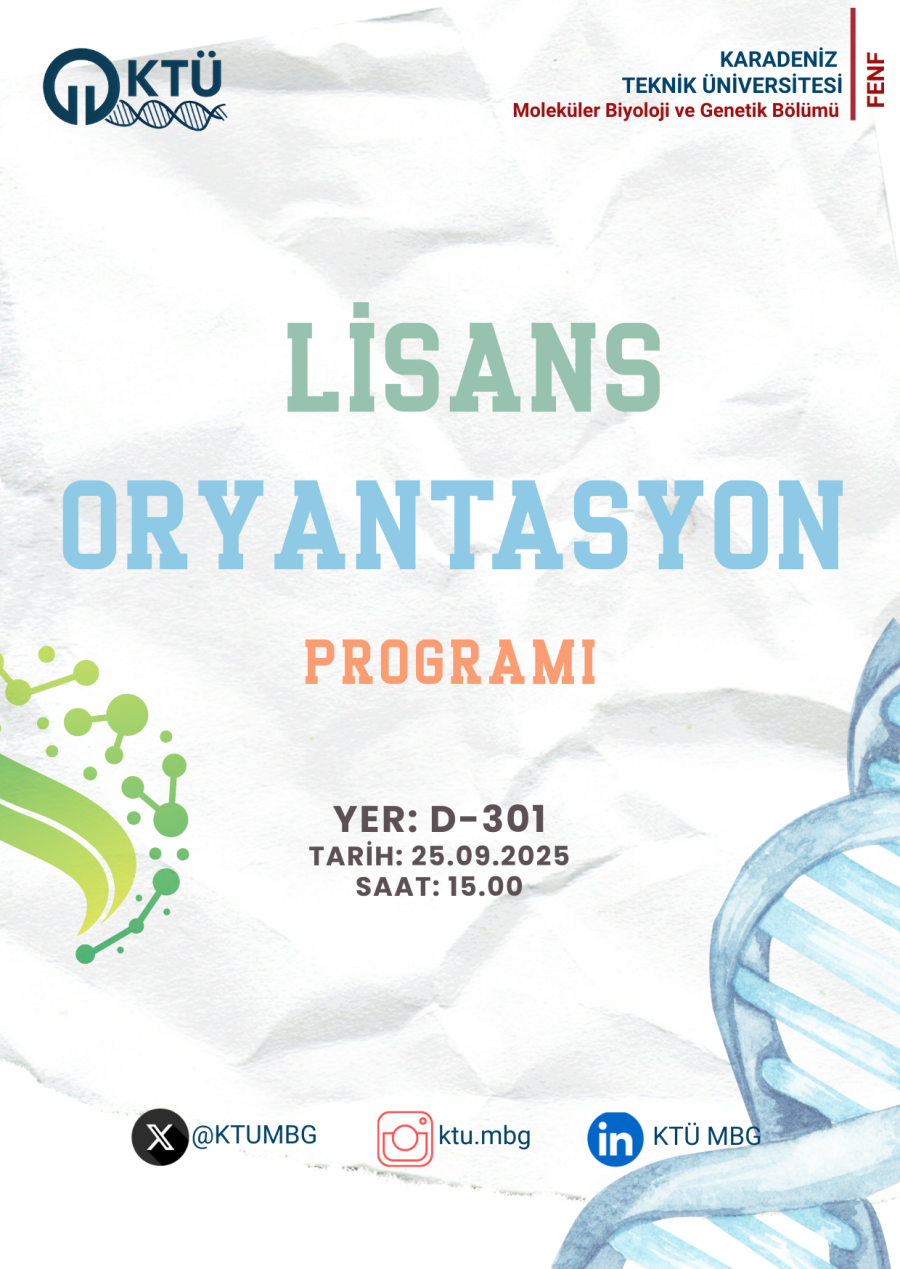 Bölümümüz tarafından 25 Eylül 2025 Perşembe günü saat 15.00’te lisans oryantasyon ve bilgilendirme toplantısı düzenlenecektir.