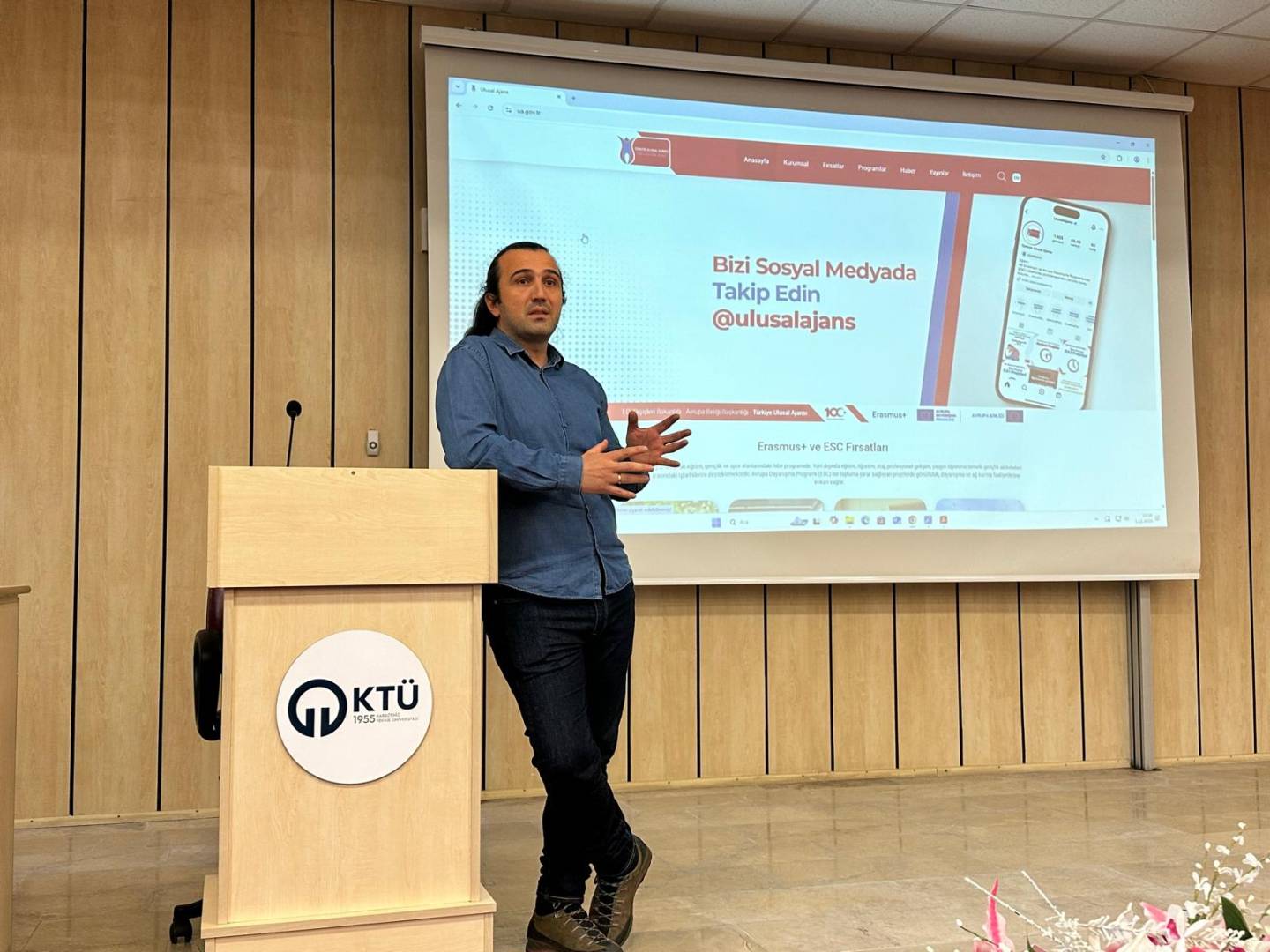 Karadeniz Teknik Üniversitesi’nde, öğrencilerin uluslararası fırsatlar konusunda farkındalığını arttırmak amacıyla düzenlenen bilgilendirme etkinliği ilgiyle karşılandı. Etkinlik kapsamında Dış İlişkiler Genel Koordinatörlüğünden Öğr. Gör. Zehra Şahin Bektaş ve Dr. Öğr. Üyesi Fatih Yılmaz, katılımcılara Avrupa Birliği Gençlik Programları ve proje yazma süreçleri hakkında kapsamlı bilgiler sundu. Sunumlarda Erasmus+ Gençlik Değişimleri, Avrupa Dayanışma Programı, DiscoverEU ve Gençlik alanındaki diğer hareketlilik fırsatları ele alındı. Programların hedefleri, başvuru koşulları, gençlere sağladığı kazanımlar ve uluslararası öğrenme deneyimleri detaylı biçimde aktarıldı. Etkinlikte ayrıca, 2026 yılı Erasmus+ Gençlik Programları için son başvuru tarihinin 12 Şubat 2026 (Brüksel saatiyle) olduğu hatırlatılarak öğrencilerin bu tarihe kadar projelerini hazırlamaları gerektiği belirtildi. Etkinliğin bitiminde öğrenciler, merak ettikleri konular hakkında sorular yönelterek programlara başvuru süreçleri konusunda birebir danışmanlık alma fırsatı buldular.