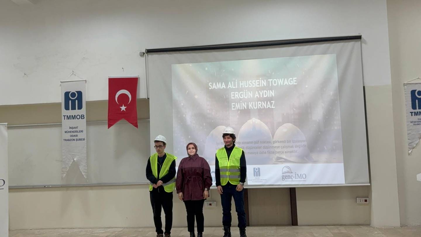 İMO Trabzon Şubesi Yönetim Kurulu Üyesi Zehra Gül Turhan inşaat mühendisi olmanın sorumluluğu ve önemine dair kısa bir konuşma gerçekleştirmiştir. Etkinlik 1.sınıf öğrencilerine baret takılmasıyla tamamlanmıştır.