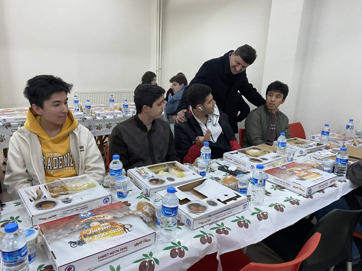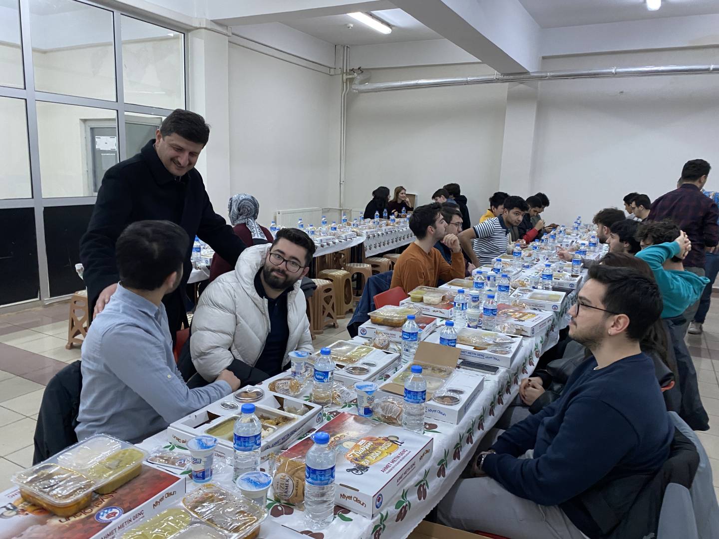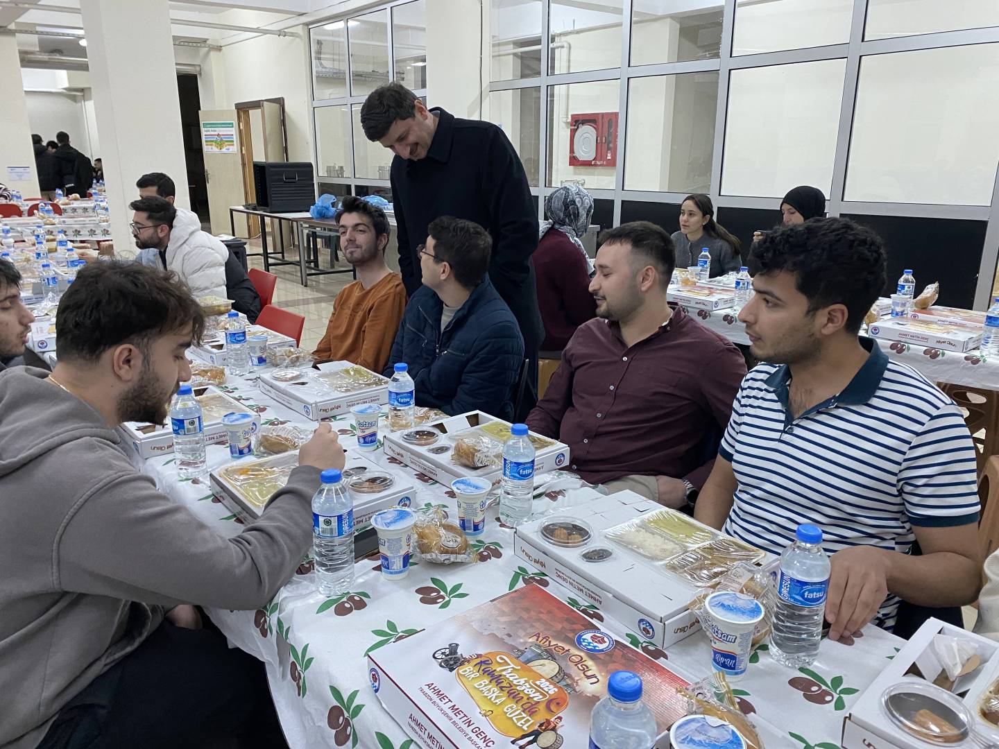 Fakülte Sekreterimiz Mustafa Yaşar; "2025 yılında başlattığımız iftar buluşmalarımızı şükürler olsun bu yıl da sürdürebildik. Ülkemizin farklı bölgelerinden hatta farklı ülkelerden öğrencilerimizle aynı amaçla aynı sofrada bir araya geldik. Ramazan aylarında bir defa iftar olan ilk hedefimizi gerçekleştirdik. İnşallah hayırsever hemşehrilerimizin destekleriyle önümüzdeki yıllar haftada bir defa, devamında da Ramazan ayı boyunca öğrencilerimize iftar imkanı sunabilmeyi hedefliyoruz. İftarımıza destek veren ve katılım sağlayan herkese teşekkür ediyorum" dedi.