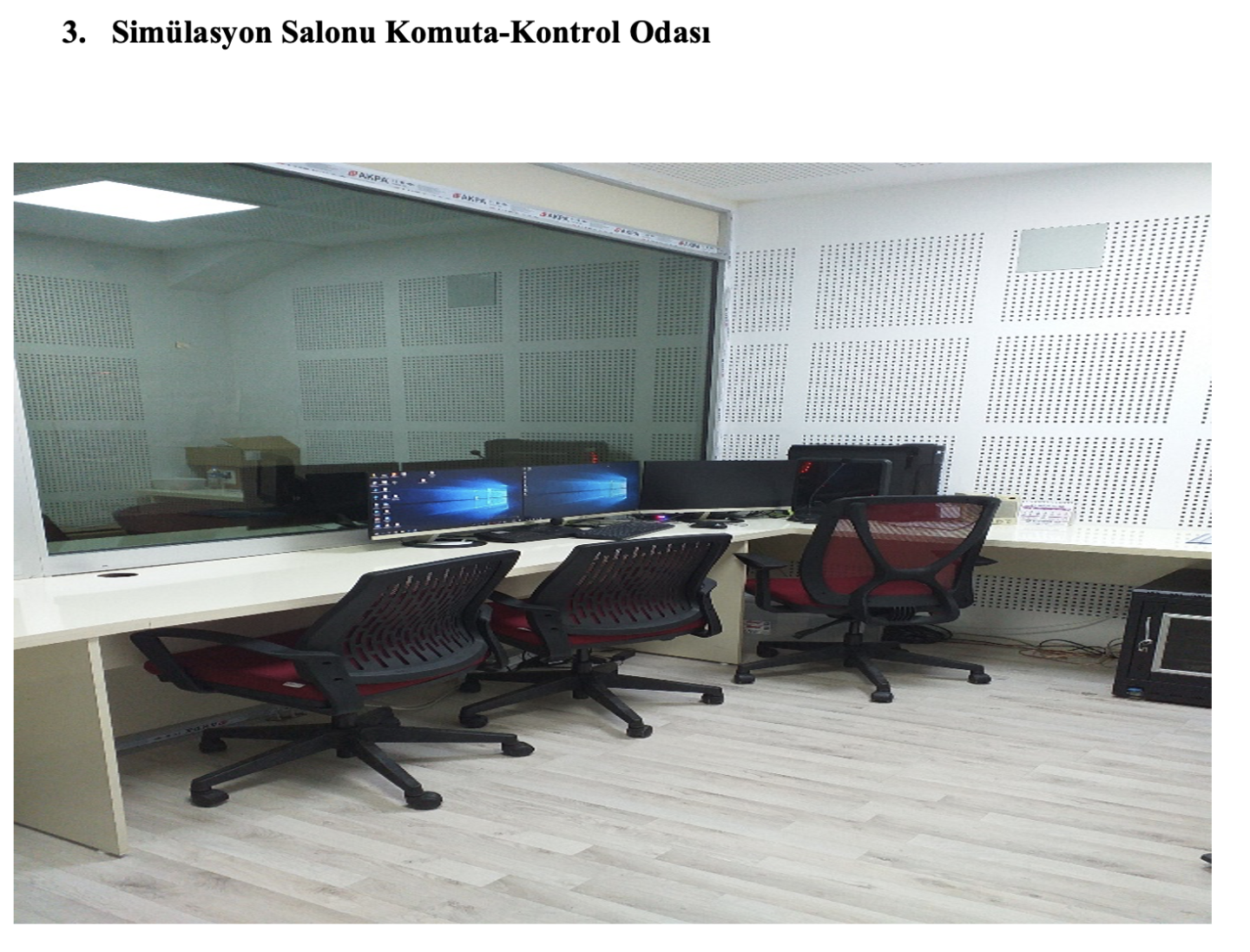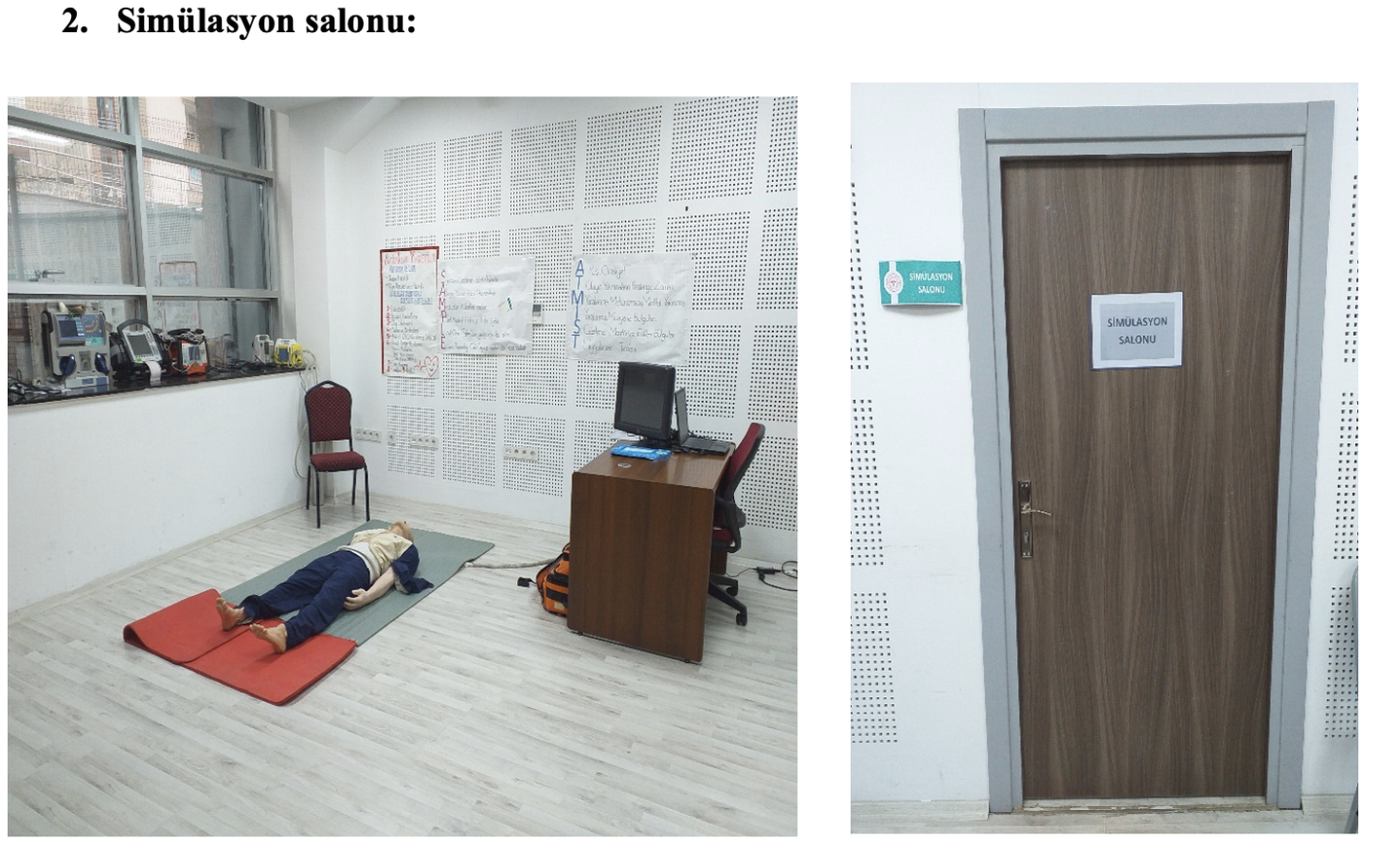 Simülasyon ses düzeni komuta odasından simülasyon odası, eğitim salonu ve eğitim/toplantı salonuna aktarılabilmektedir. Simülasyon görüntü aktarımı toplantı/eğitim salonuna yapılabilmektedir. Eğitimlerde kullanılan maketler; 2 adet erişkin Orta Düzeyde Gerçekliği Yansıtan Simülatör (Medium Low Fidelity), 1 adet pediatrik Orta Düzeyde Gerçekliği Yansıtan Simülatör, 3 er adet erişkin, çocuk ve bebek temel yaşam desteği basit maket, 3?er adet erişkin, çocuk ve bebek endotrakeal entübasyon maketi, 1 adet kemik içi uygulama maketi ve 1 adet iğne dekompresyon uygulama maketleridir. Ayrıca eğitim merkezimizde acil yardım ambulanslarında kullanılan tüm sedye, monitör, tıbbı donanım ve sarf malzemeler mevcuttur.