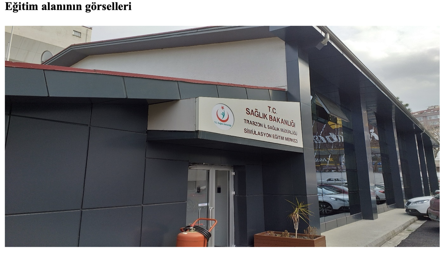Etkinlik yapılacak alanın fiziki ve teknik donanımı:Trabzon İl Sağlık Müdürlüğü Bölge Eğitim ve Araştırma ve Simülasyon Merkezi, İl Sağlık Müdürlüğü Kampusu içerisinde bulunmaktadır. Bina içerisinde bir adet 21 kişilik toplantı/eğitim salonu, bir adet simülasyon eğitim odası ve bir adet eğitim salonu ve bir adet eğitim ofisi bulunmaktadır. Salonların bulunduğu alanda mola zamanlarında kullanılmak üzere 1 adet mutfak ve sosyal alan vardır. Toplantı/ Eğitim salonunda internet bağlantısı olan yansıtıcı bulunmaktadır.
