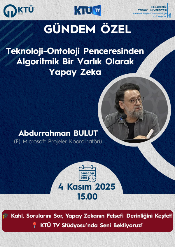 (E) Microsoft Projeler Koordinatörü Abdurrahman BULUT, yapay zekanın felsefi derinliğini ve insanla ilişkisini farklı bir bakış açısıyla ele alacak. Tüm Öğrencilerimiz davetlidir.