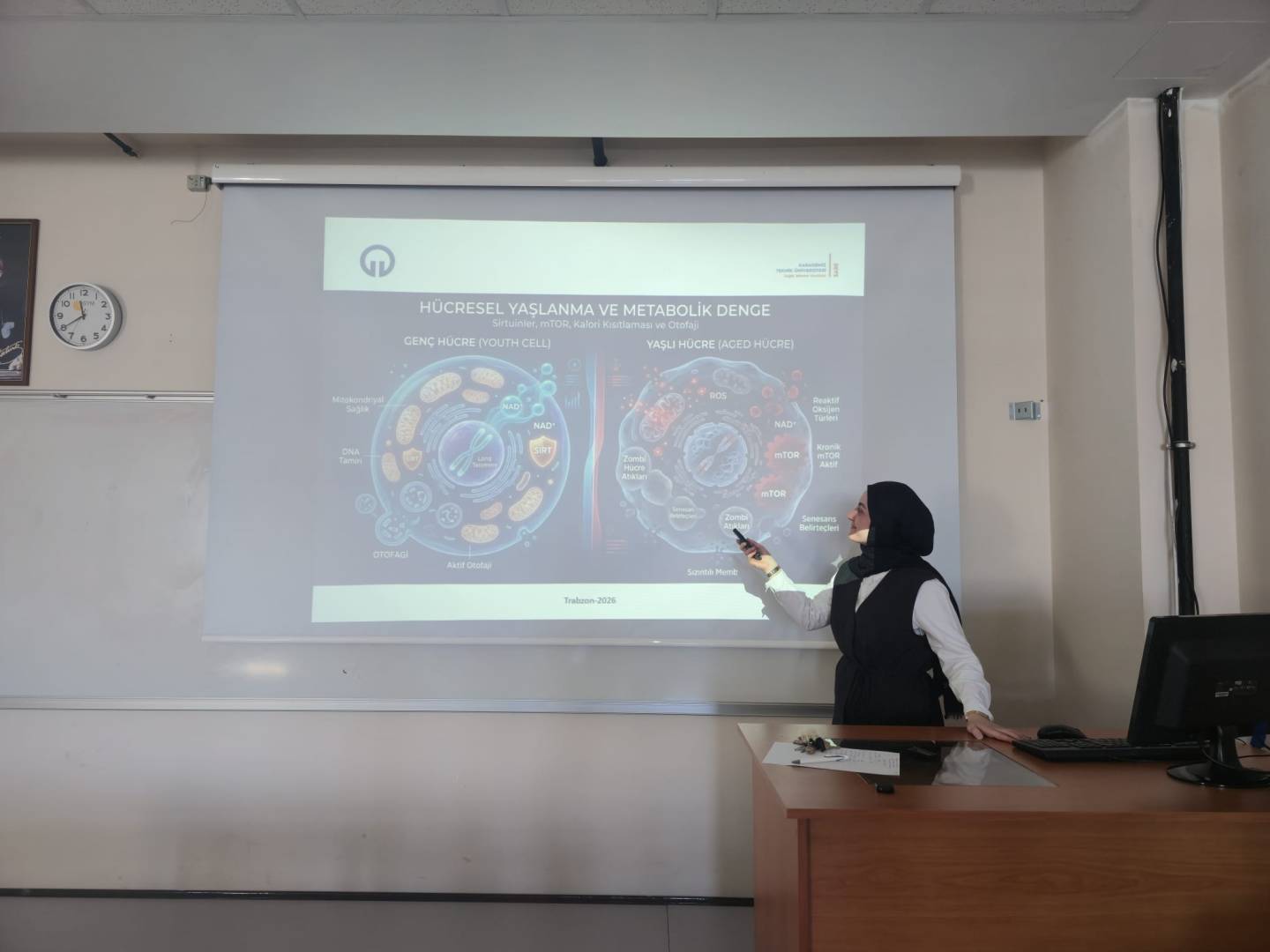 Eczacılıkta Biyokimya Ana Bilim Dalı yüksek lisans öğrencisi İrem ÇETECİ, "Hücresel Yaşlanma ve Metabolizmanın Biyokimyası: Sirtuinler, mTOR ve Kalori Kısıtlaması" konulu seminer sunumunu gerçekleştirdi.