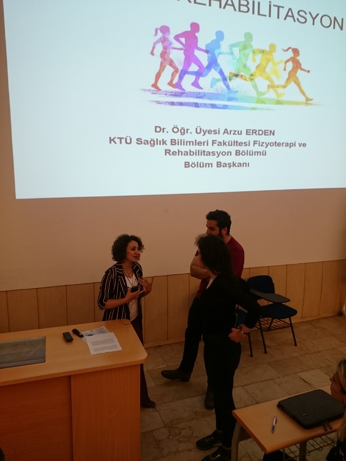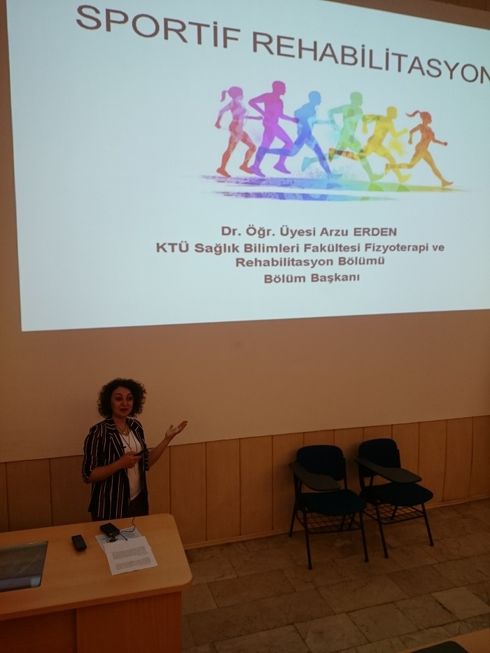 Fizyoterapi ve Rehabilitasyon Bölüm Başkanı Dr. Öğr. Üyesi Arzu ERDEN 9 Mayıs 2018 tarihinde KTÜ Anatomi Anabilim Dalı bünyesinde Egzersiz Anatomisi Dersi kapsamında Sportif Fizyoterapi konusunu Tıp Fakültesi öğrencileriyle buluşturdu.