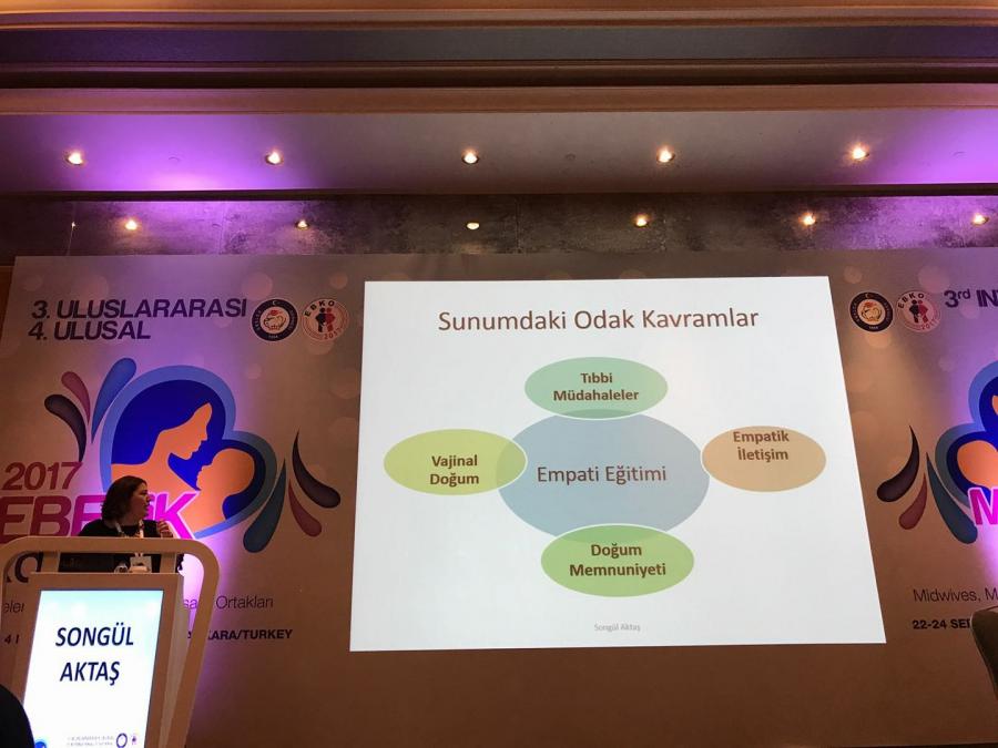 Sağlık Bilimleri Fakültesi Hemşirelik Bölümü, Kadın Sağlığı ve Hastalıkları Hemşireliği AD Öğretim Üyesi Yrd. Doç. Dr. Songül Aktaş, 22-24 Eylül 2017 tarihleri arasında Ankara'da yapılan 4. Ulusal / 3. Uluslararası Ebelik Kongresine “davetli konuşmacı” olarak katıldı. Kongrenin 7.oturumunda Aktaş, “Ebelere verilen empati eğitiminin; vajinal doğumda anne memnuniyeti ve tıbbi müdahale uygulamalarına etkisi: TÜBİTAK projesinin bazı sonuçları” konusunda konuşma yaptı.