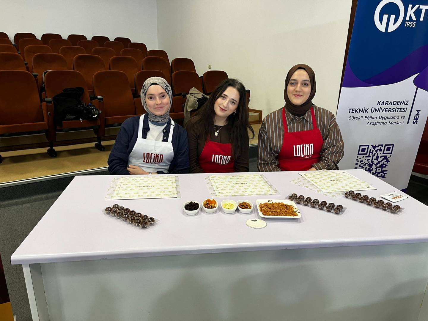 28 Ekim 2025 tarihinde, Bölüm Başkanımız Prof. Dr. Neslihan SARUHAN GÜLER, Arş. Gör. Elif ÖZTÜRK ve öğrencilerimiz, KTÜ Sürekli Eğitim Merkezi ve Lokma Tatlı Dünyası iş birliğiyle düzenlenen ‘’Çikolata Hazırlama Eğitimi’’ etkinliğine katıldılar.