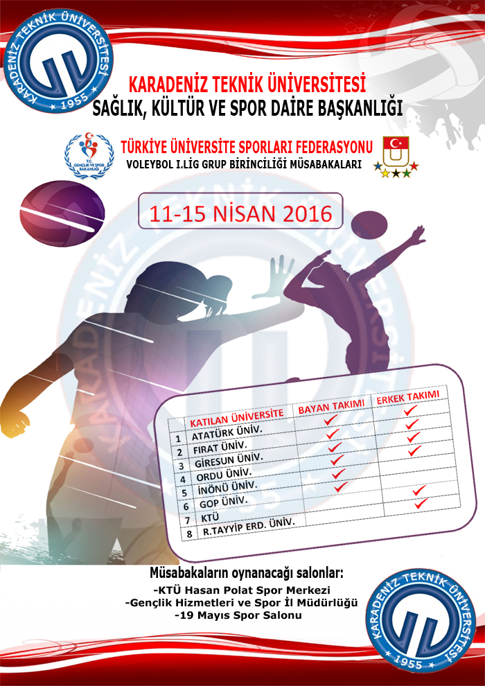 Üniversitelerarası Voleybol 1.lig Grup Birinciliği Müsabakaları (11-15 Nisan 2016)