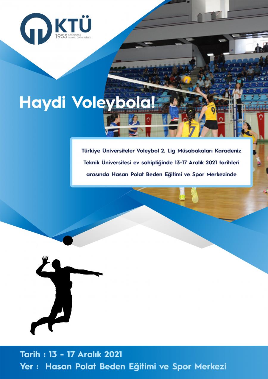 Türkiye Üniversiteler Voleybol 2. Lig Müsabakaları Karadeniz Teknik Üniversitesi ev sahipliğinde 13-17 Aralık 2021 tarihleri arasında Hasan Polat Beden Eğitimi ve Spor Merkezinde düzenlenecektir. Müsabakalara katılan üniversitelerin listesi aşağıda yer almaktadır. Müsabaha fikstrürü ileride yine bu sayfadan ilan edilecektir.